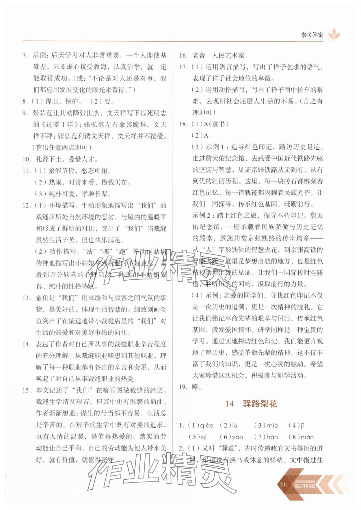 注:目前有些书本章节名称可能整理的还不是很完善,但都是按照顺序排列的,请同学们按照顺序仔细查找。练习册 2025年随堂同步练习七年级语文下册人教版 答案主要是用来给同学们做完题方便对答案用的,请勿直接抄袭。