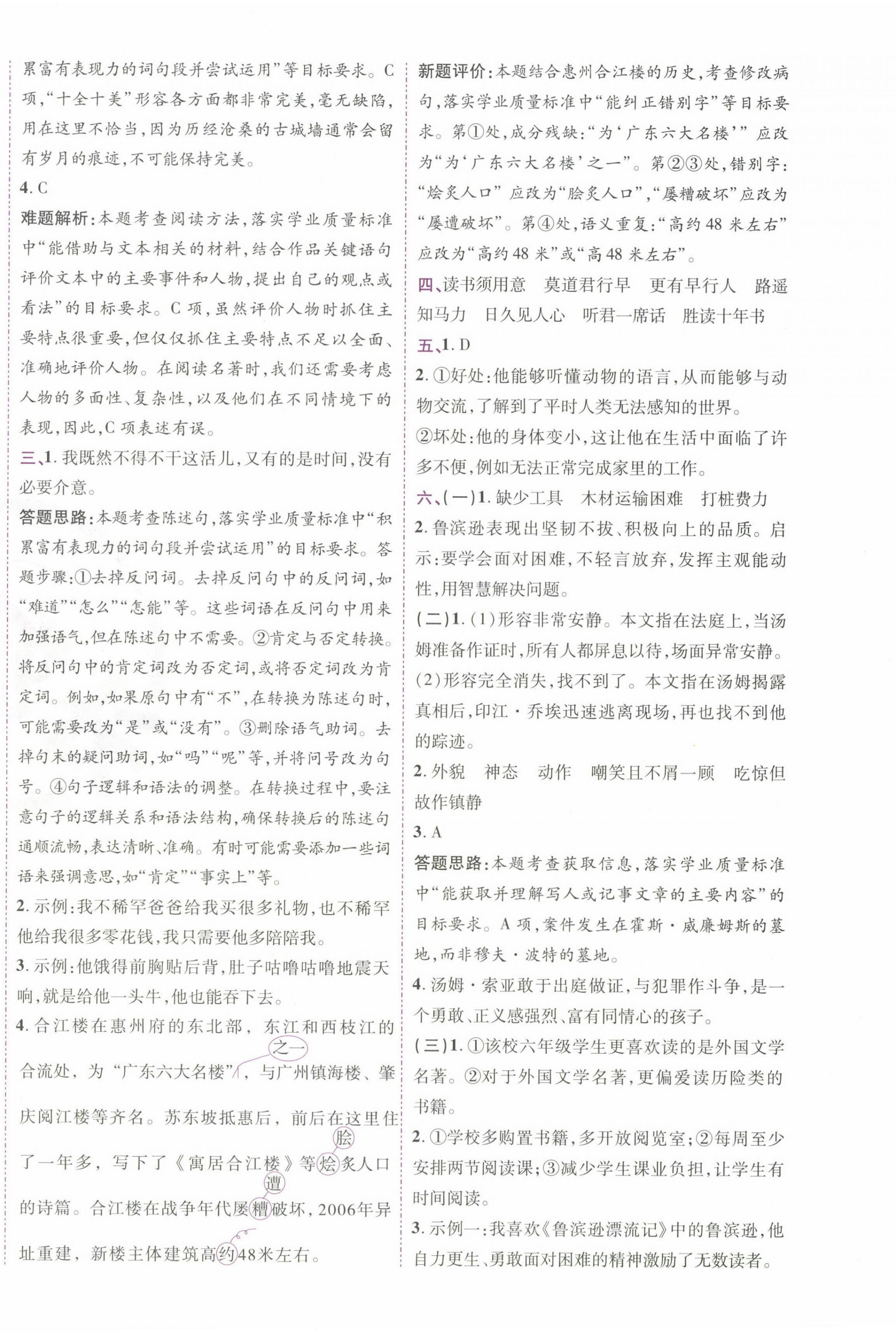 注:目前有些书本章节名称可能整理的还不是很完善,但都是按照顺序排列的,请同学们按照顺序仔细查找。练习册 2025年动成长题题体现核心素养六年级语文下册人教版惠州专版 答案主要是用来给同学们做完题方便对答案用的,请勿直接抄袭。