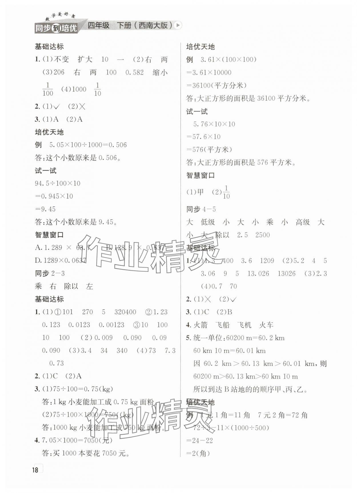 注:目前有些书本章节名称可能整理的还不是很完善,但都是按照顺序排列的,请同学们按照顺序仔细查找。练习册 2025年数学爱好者同步到培优四年级下册西师大版 答案主要是用来给同学们做完题方便对答案用的,请勿直接抄袭。