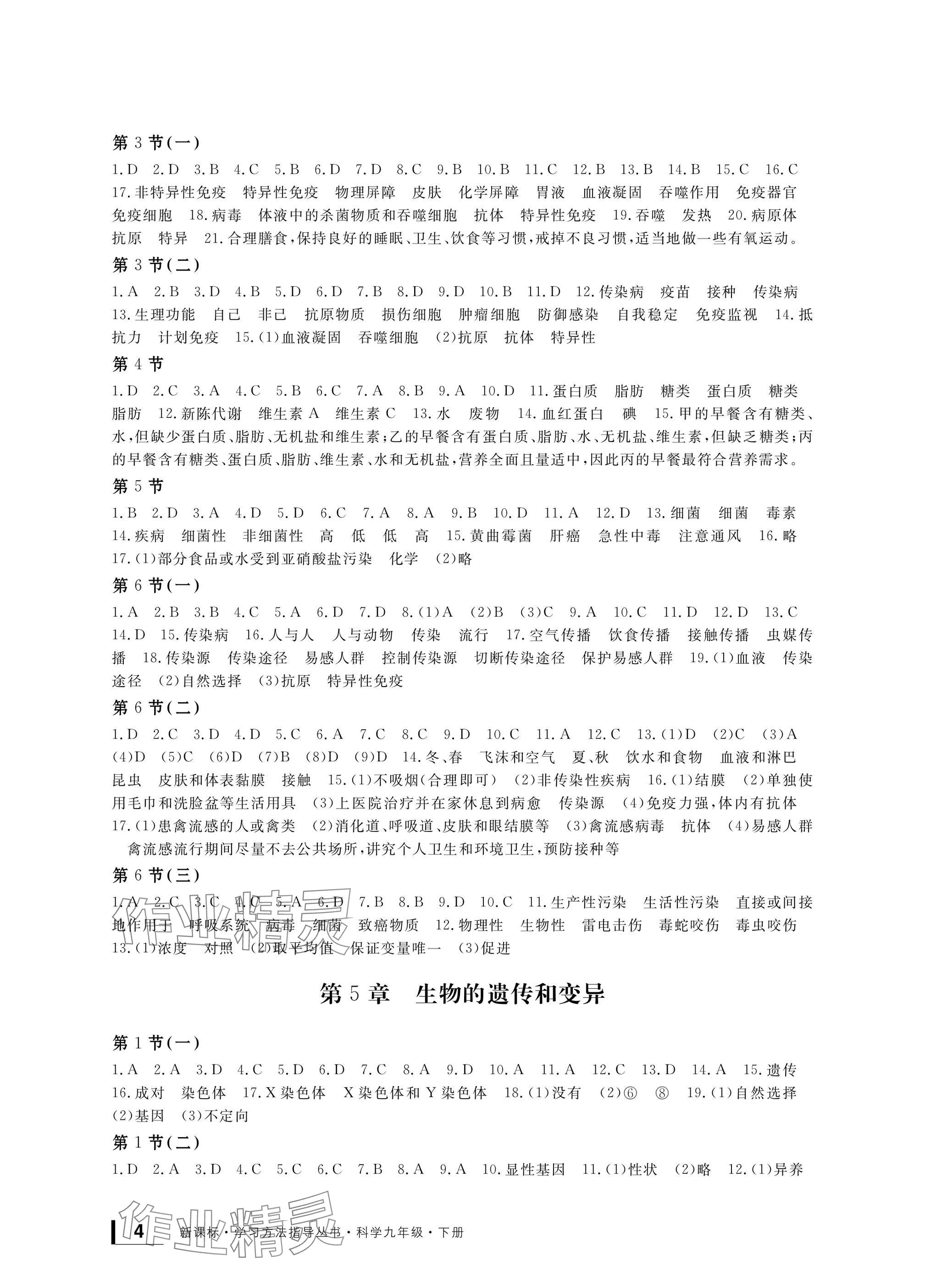 注:目前有些书本章节名称可能整理的还不是很完善,但都是按照顺序排列的,请同学们按照顺序仔细查找。练习册 2025年新课标学习方法指导丛书九年级科学下册华师大版 答案主要是用来给同学们做完题方便对答案用的,请勿直接抄袭。