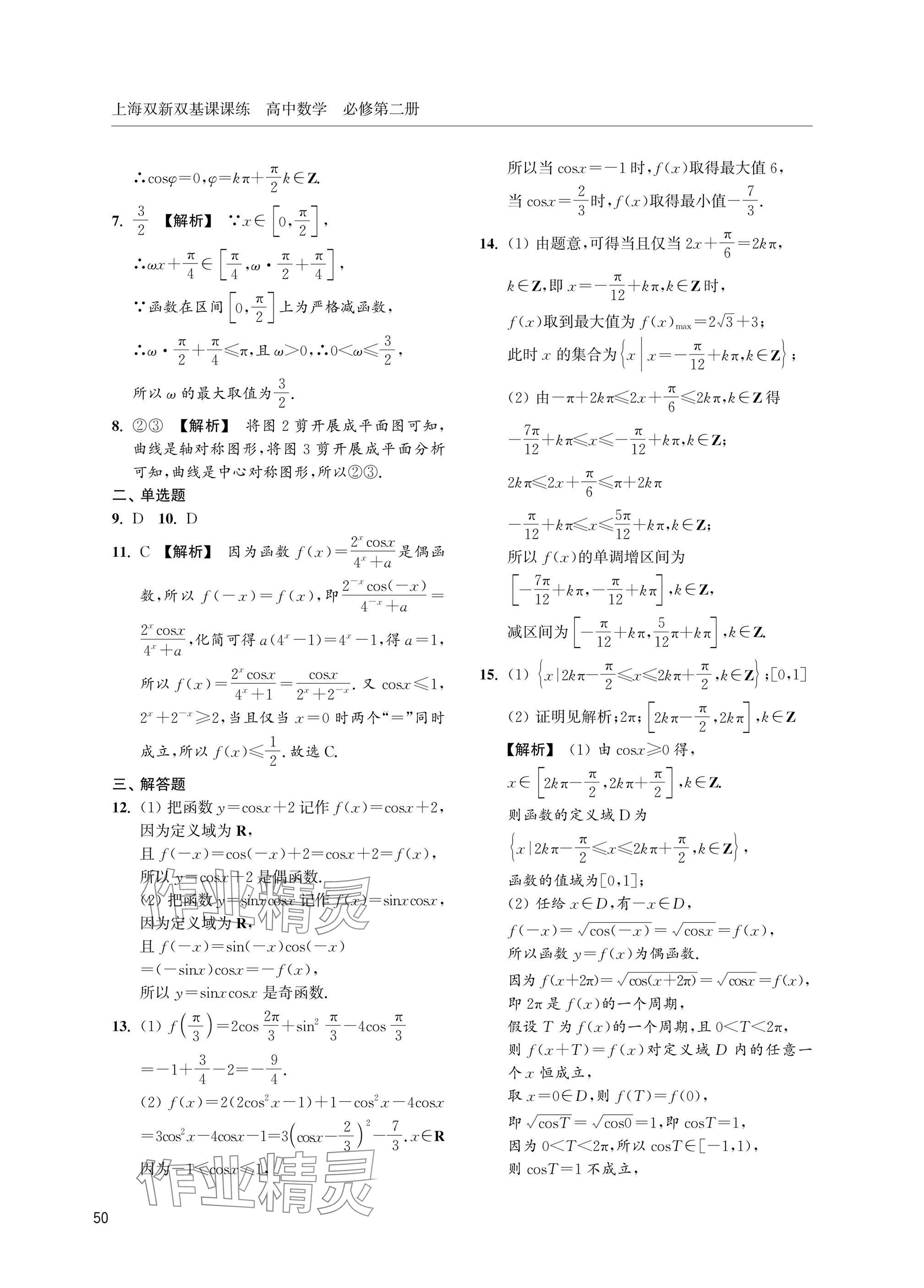 注:目前有些书本章节名称可能整理的还不是很完善,但都是按照顺序排列的,请同学们按照顺序仔细查找。练习册 2025年上海双新双基课课练高中数学必修第二册沪教版 答案主要是用来给同学们做完题方便对答案用的,请勿直接抄袭。
