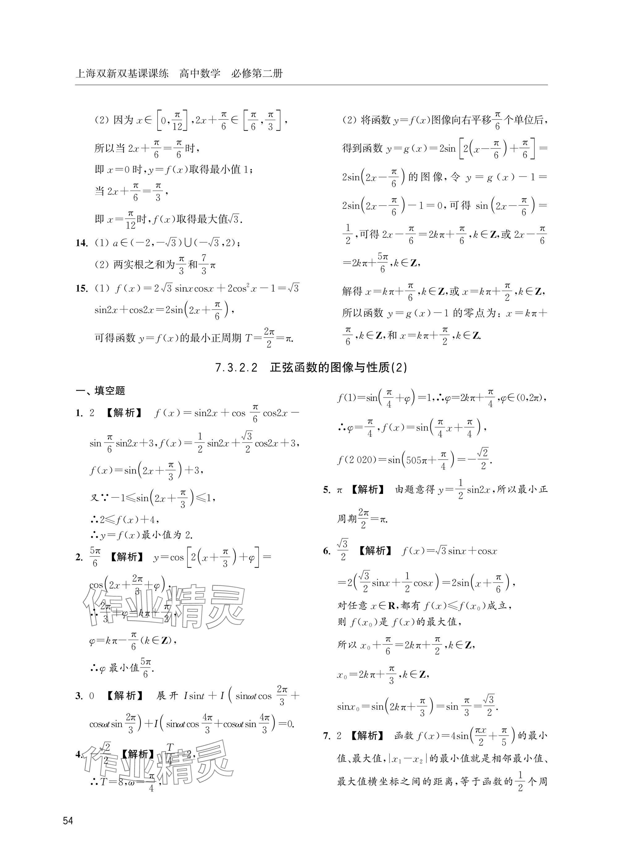 注:目前有些书本章节名称可能整理的还不是很完善,但都是按照顺序排列的,请同学们按照顺序仔细查找。练习册 2025年上海双新双基课课练高中数学必修第二册沪教版 答案主要是用来给同学们做完题方便对答案用的,请勿直接抄袭。