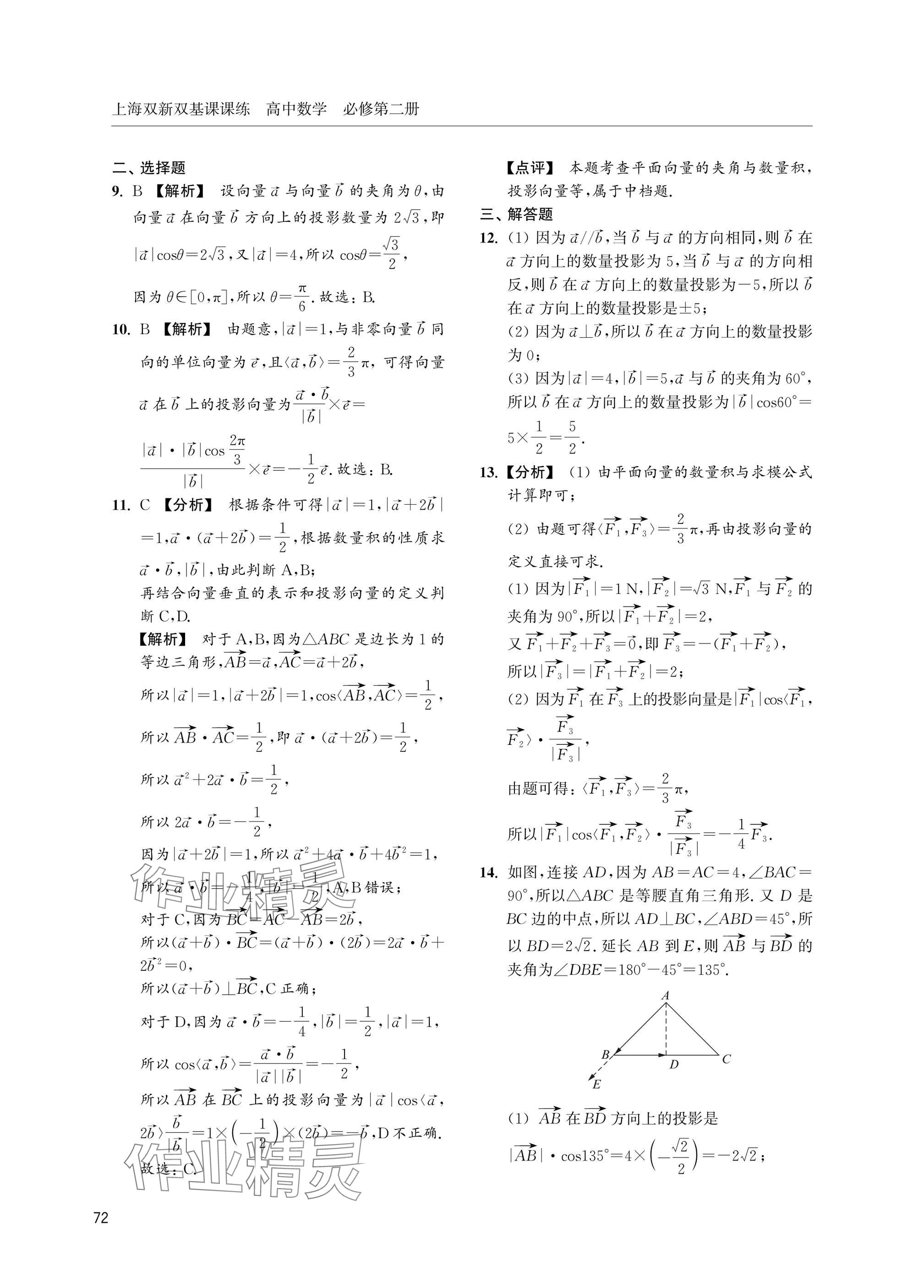 注:目前有些书本章节名称可能整理的还不是很完善,但都是按照顺序排列的,请同学们按照顺序仔细查找。练习册 2025年上海双新双基课课练高中数学必修第二册沪教版 答案主要是用来给同学们做完题方便对答案用的,请勿直接抄袭。