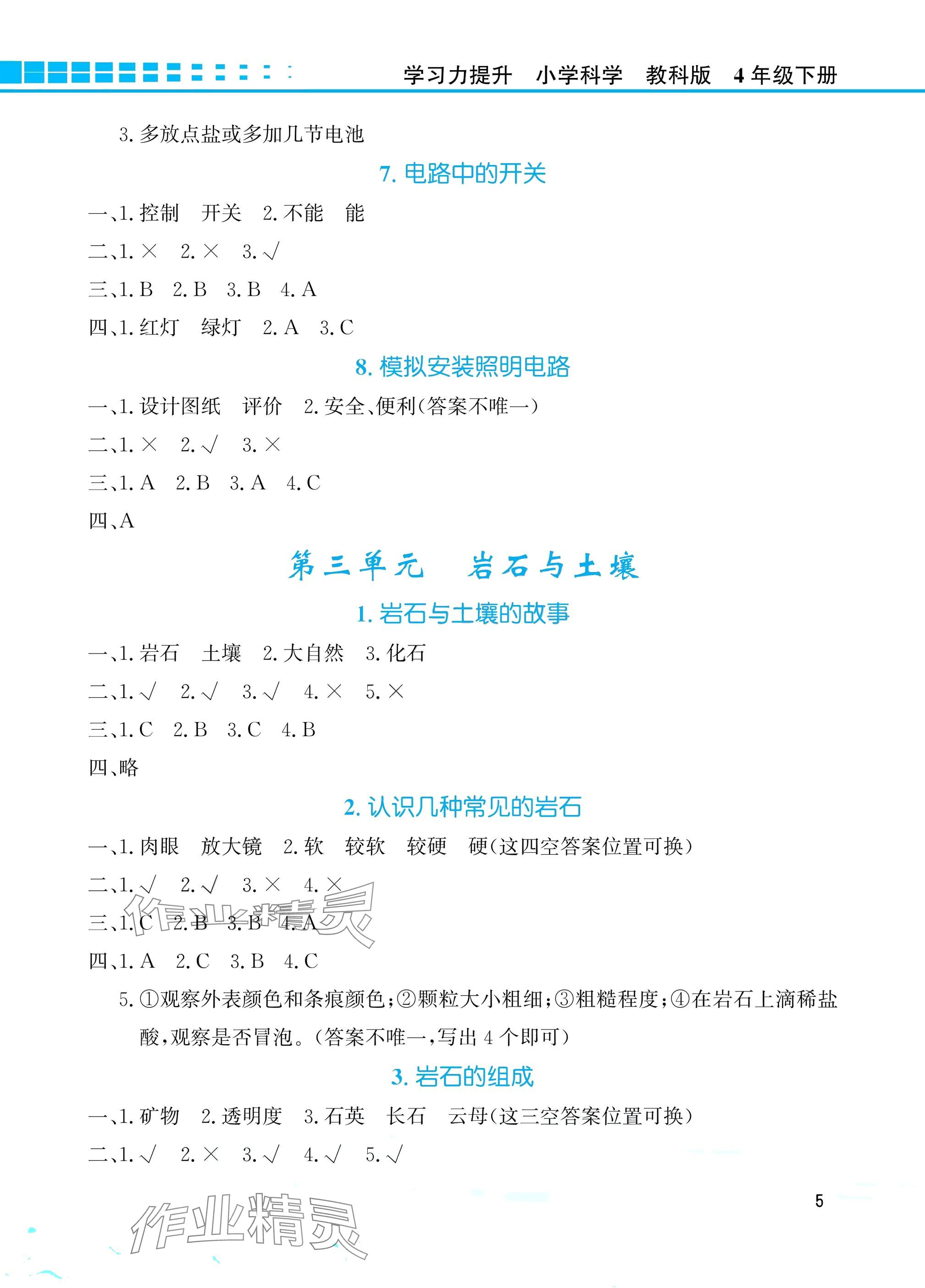 注:目前有些书本章节名称可能整理的还不是很完善,但都是按照顺序排列的,请同学们按照顺序仔细查找。练习册 2025年学习力提升四年级科学下册教科版 答案主要是用来给同学们做完题方便对答案用的,请勿直接抄袭。