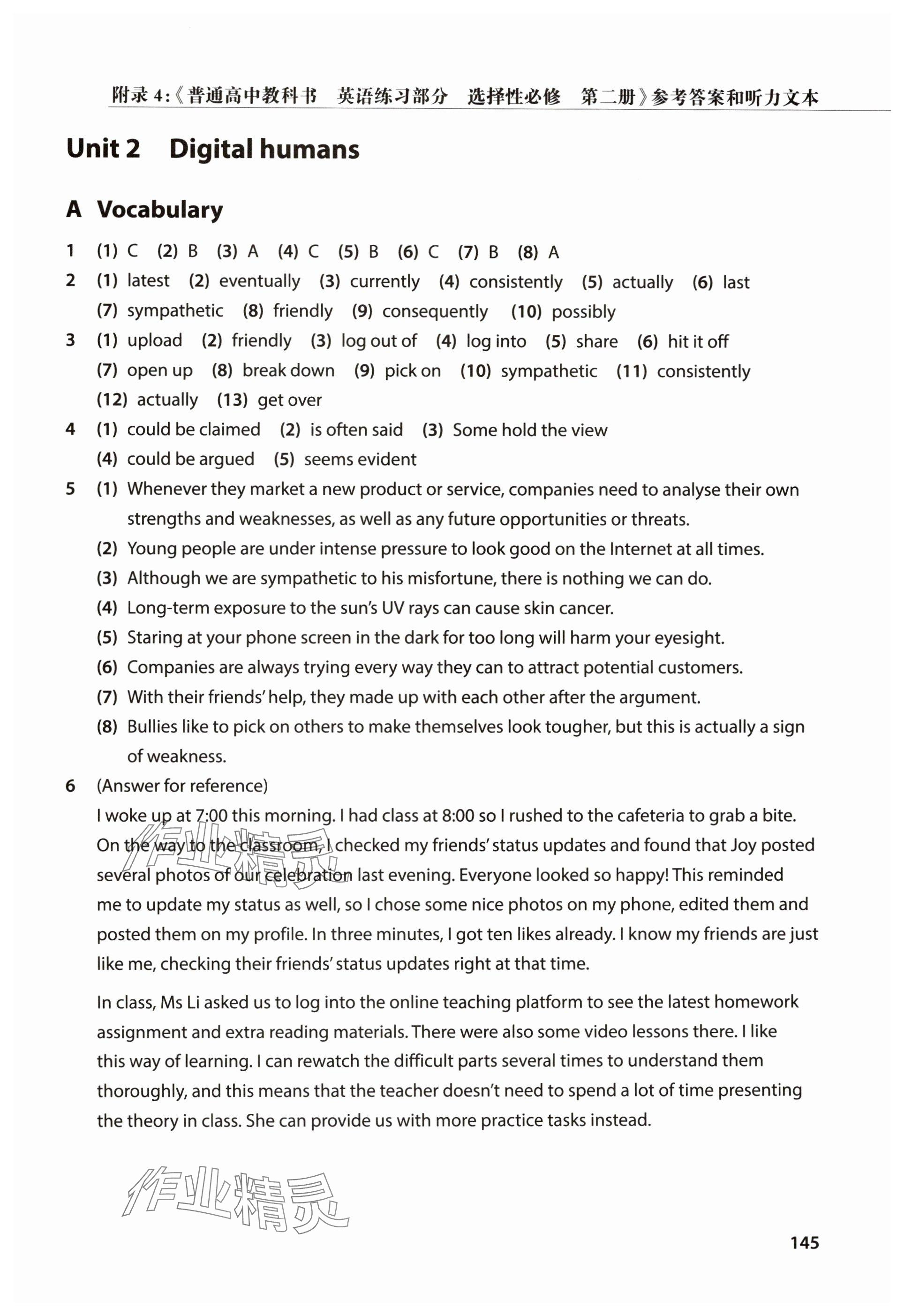 注:目前有些书本章节名称可能整理的还不是很完善,但都是按照顺序排列的,请同学们按照顺序仔细查找。练习册 2025年练习部分高中英语选择性必修第二册沪教版 答案主要是用来给同学们做完题方便对答案用的,请勿直接抄袭。