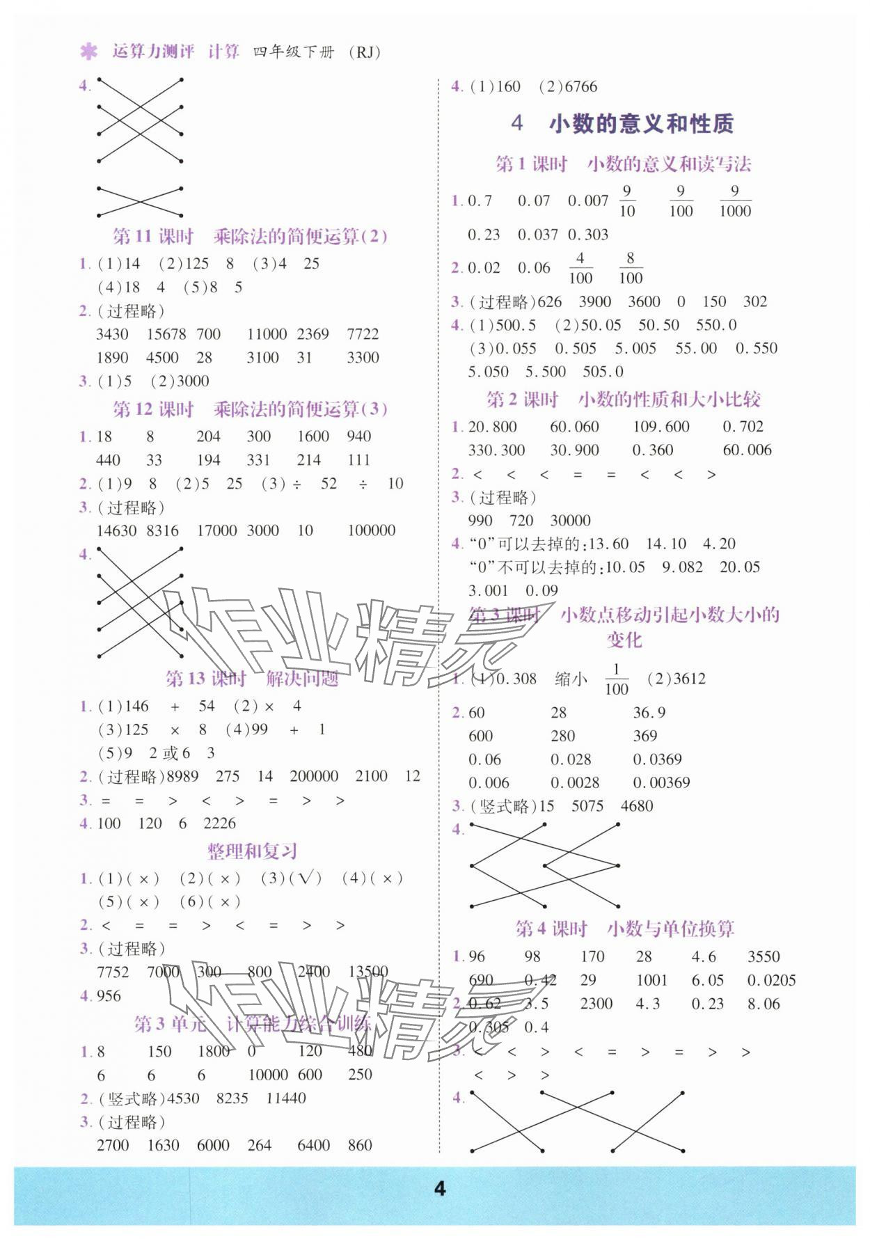 注:目前有些书本章节名称可能整理的还不是很完善,但都是按照顺序排列的,请同学们按照顺序仔细查找。练习册 2025年计算运算力测评四年级数学下册人教版 答案主要是用来给同学们做完题方便对答案用的,请勿直接抄袭。