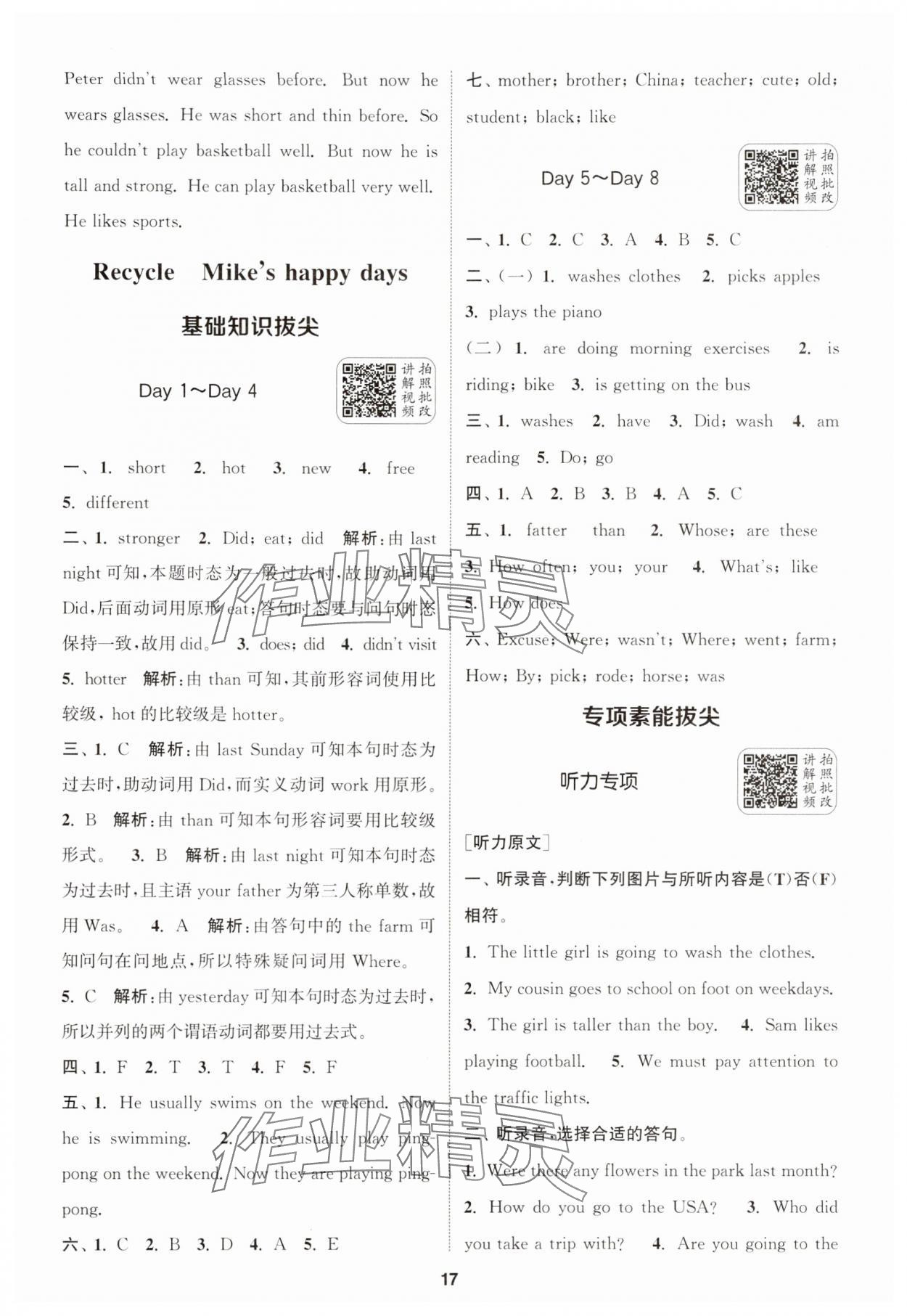 注:目前有些书本章节名称可能整理的还不是很完善,但都是按照顺序排列的,请同学们按照顺序仔细查找。练习册 2025年通城学典拔尖新方案六年级英语下册人教版 答案主要是用来给同学们做完题方便对答案用的,请勿直接抄袭。