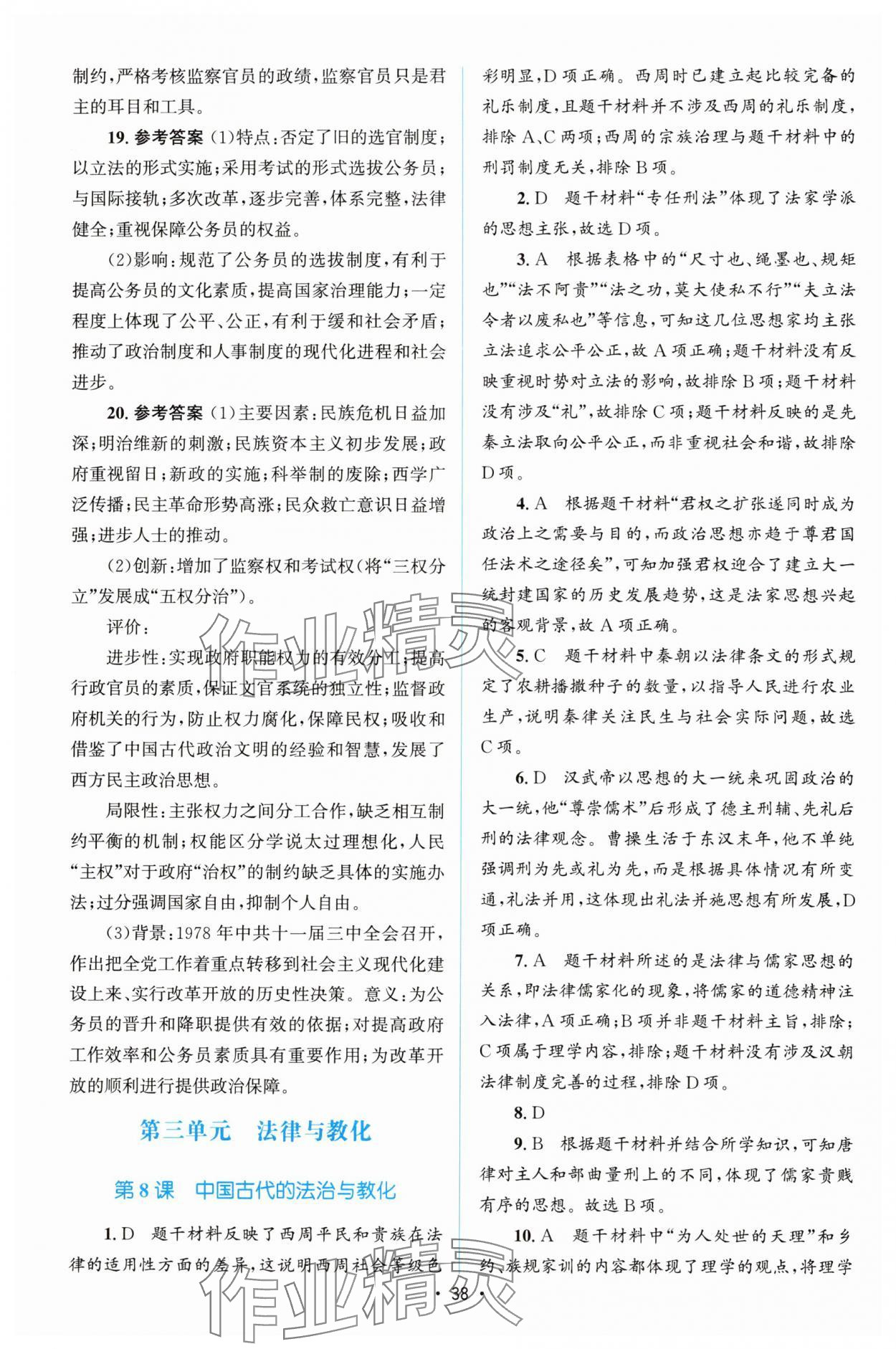 注:目前有些书本章节名称可能整理的还不是很完善,但都是按照顺序排列的,请同学们按照顺序仔细查找。练习册 2024年高中同步测控优化设计高中历史选择性必修1人教版增强版 答案主要是用来给同学们做完题方便对答案用的,请勿直接抄袭。