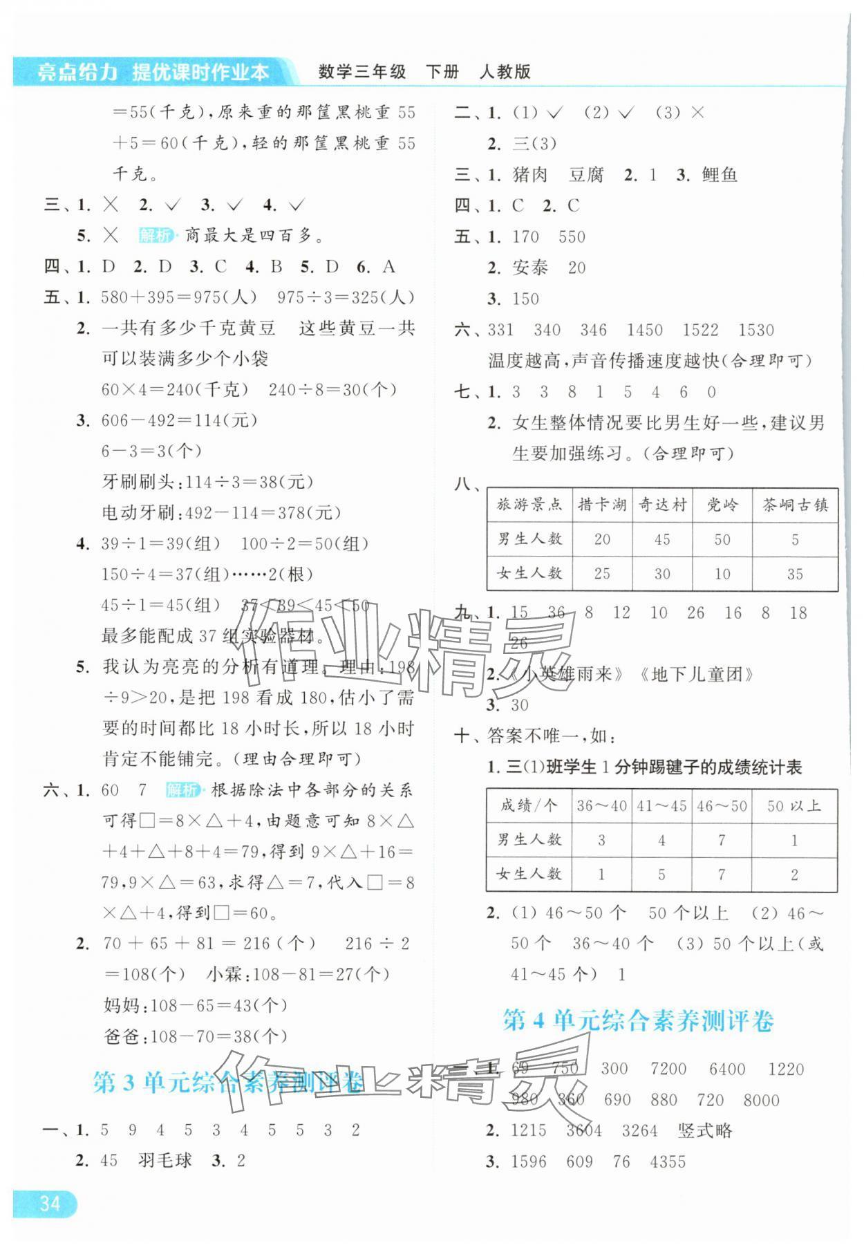 注:目前有些书本章节名称可能整理的还不是很完善,但都是按照顺序排列的,请同学们按照顺序仔细查找。练习册 2025年亮点给力提优课时作业本三年级数学下册人教版浙江专版 答案主要是用来给同学们做完题方便对答案用的,请勿直接抄袭。