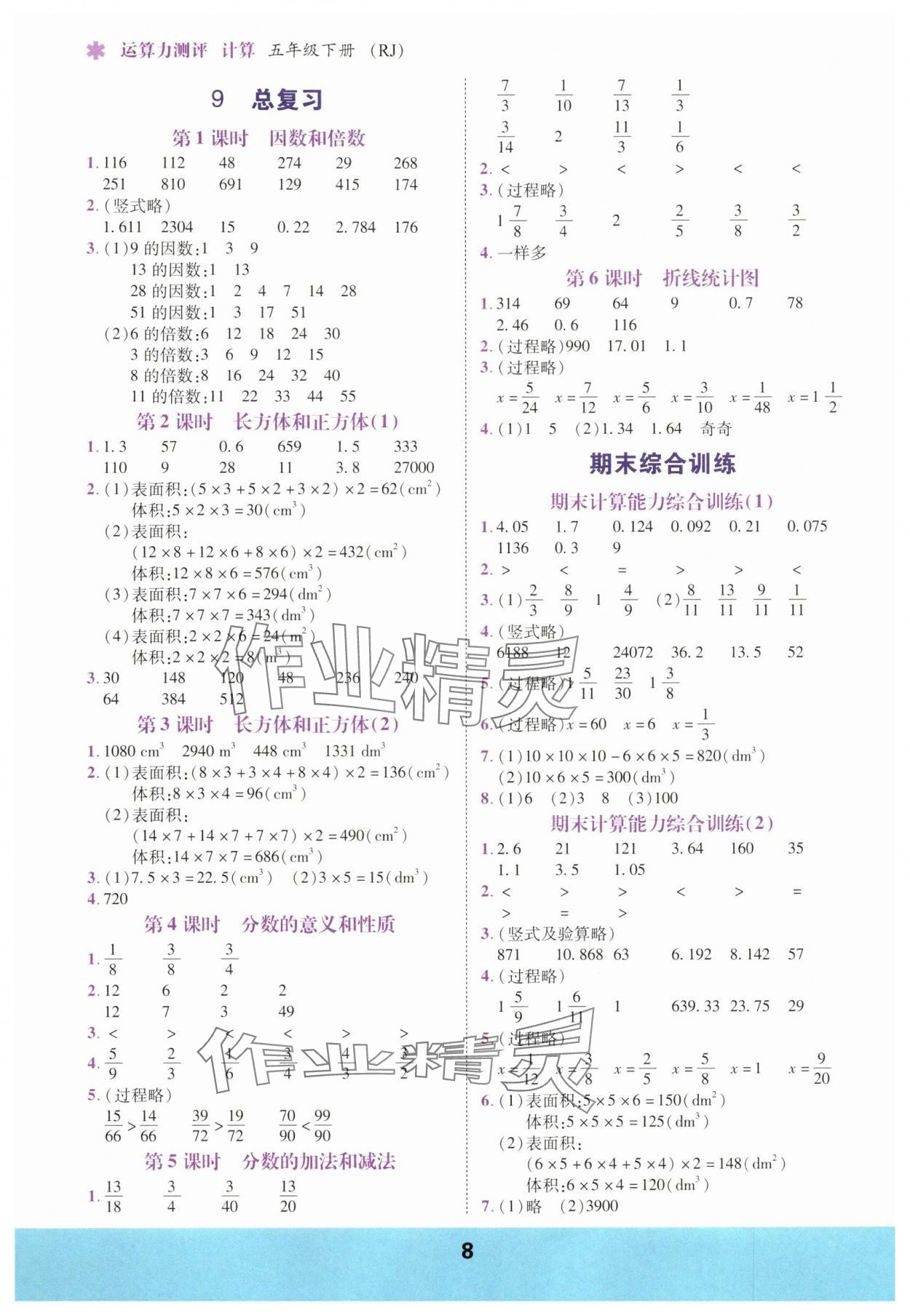 注:目前有些书本章节名称可能整理的还不是很完善,但都是按照顺序排列的,请同学们按照顺序仔细查找。练习册 2025年计算运算力测评五年级数学下册人教版 答案主要是用来给同学们做完题方便对答案用的,请勿直接抄袭。