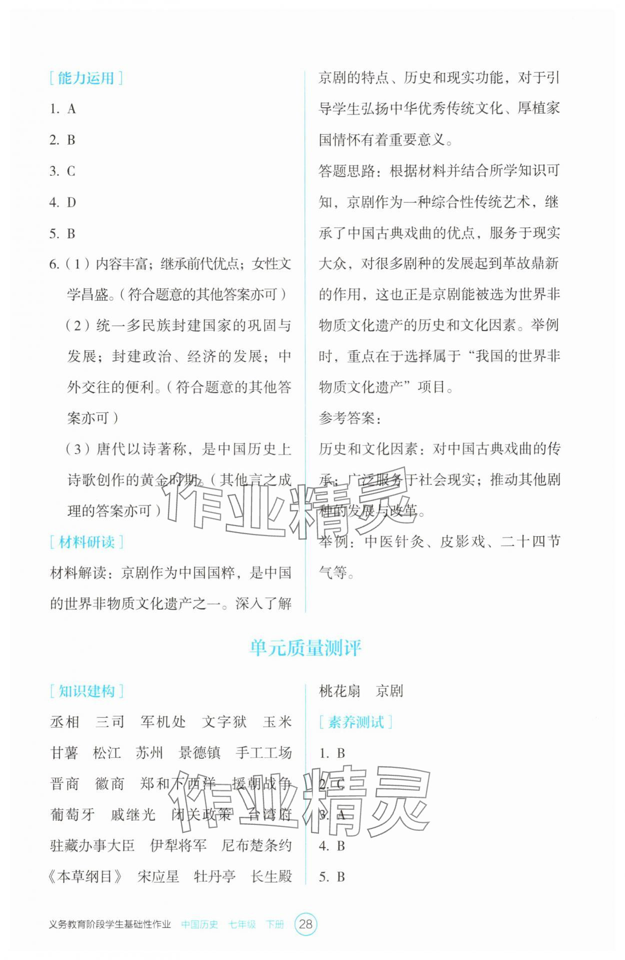 注:目前有些书本章节名称可能整理的还不是很完善,但都是按照顺序排列的,请同学们按照顺序仔细查找。练习册 2025年学生基础性作业七年级历史下册人教版 答案主要是用来给同学们做完题方便对答案用的,请勿直接抄袭。