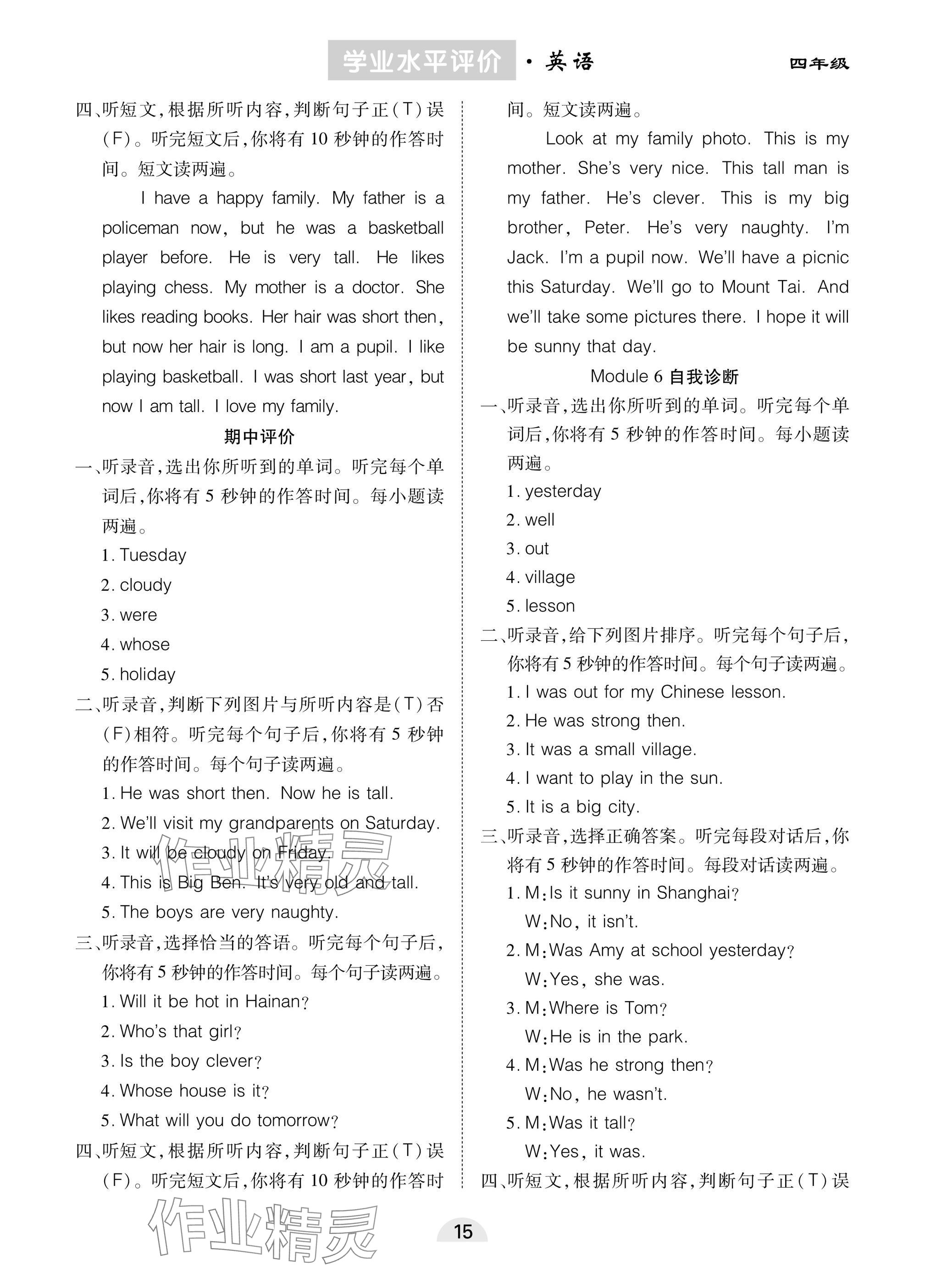 注:目前有些书本章节名称可能整理的还不是很完善,但都是按照顺序排列的,请同学们按照顺序仔细查找。练习册 2025年学业水平评价四年级英语下册外研版 答案主要是用来给同学们做完题方便对答案用的,请勿直接抄袭。