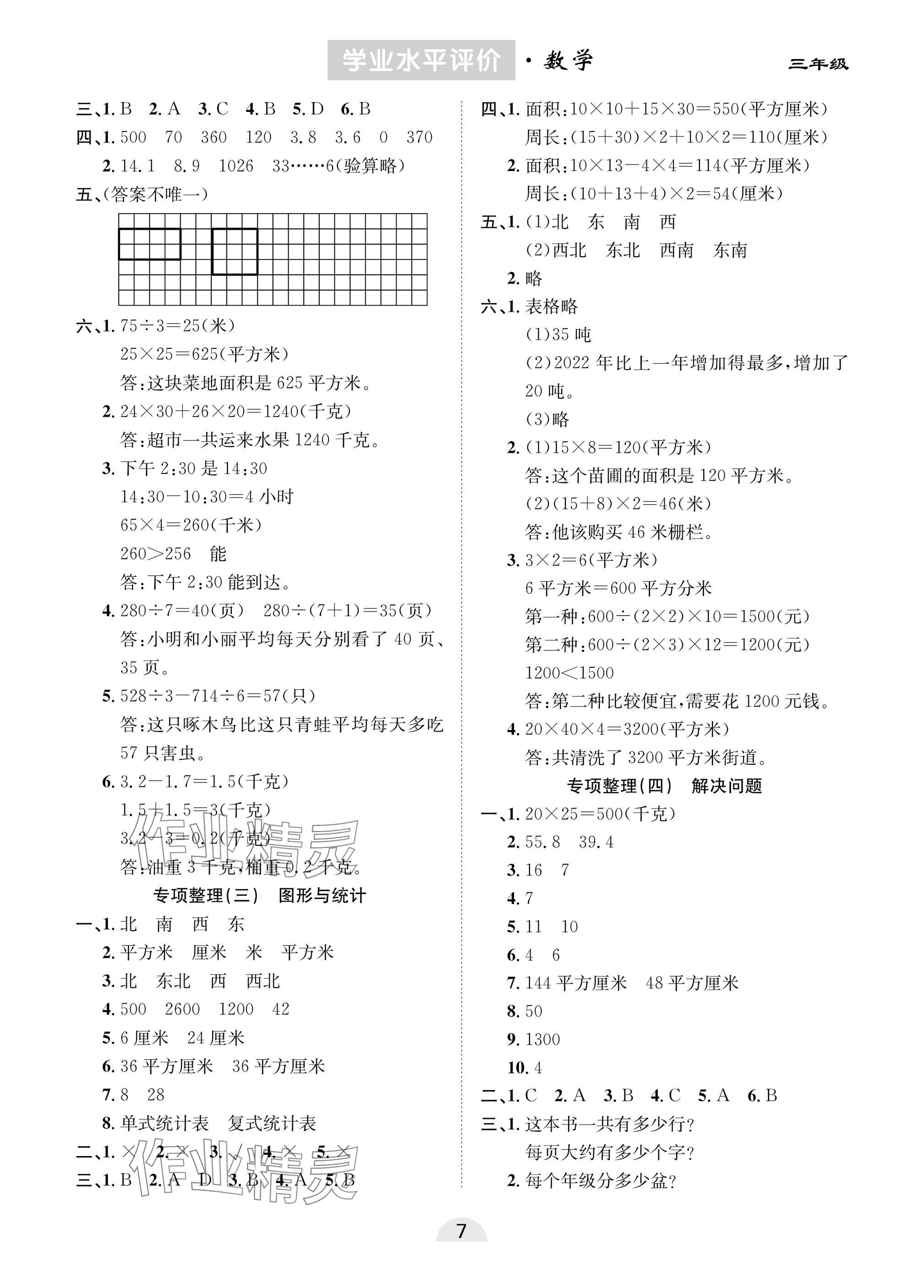 注:目前有些书本章节名称可能整理的还不是很完善,但都是按照顺序排列的,请同学们按照顺序仔细查找。练习册 2025年学业水平评价三年级数学下册人教版 答案主要是用来给同学们做完题方便对答案用的,请勿直接抄袭。
