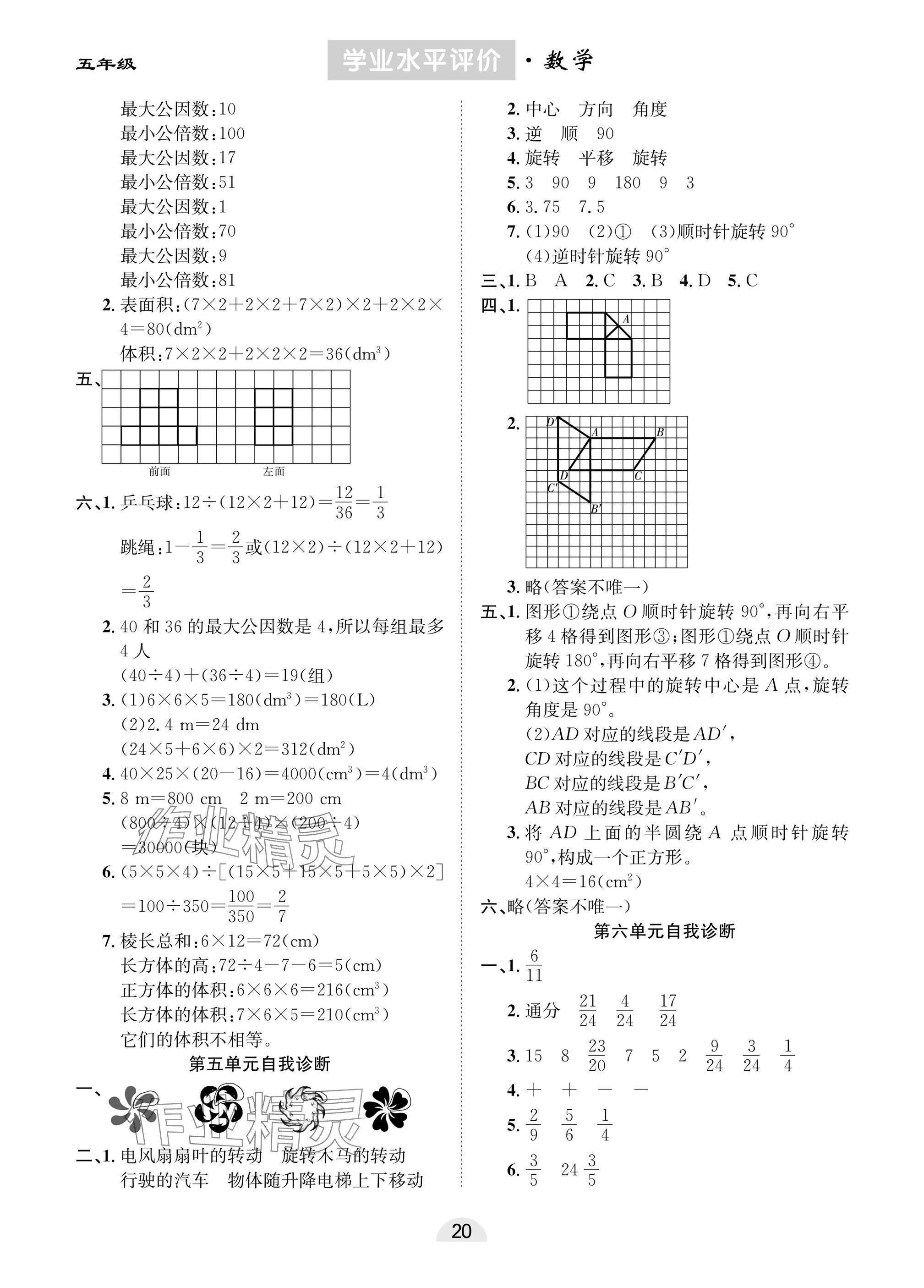注:目前有些书本章节名称可能整理的还不是很完善,但都是按照顺序排列的,请同学们按照顺序仔细查找。练习册 2025年学业水平评价五年级数学下册人教版 答案主要是用来给同学们做完题方便对答案用的,请勿直接抄袭。