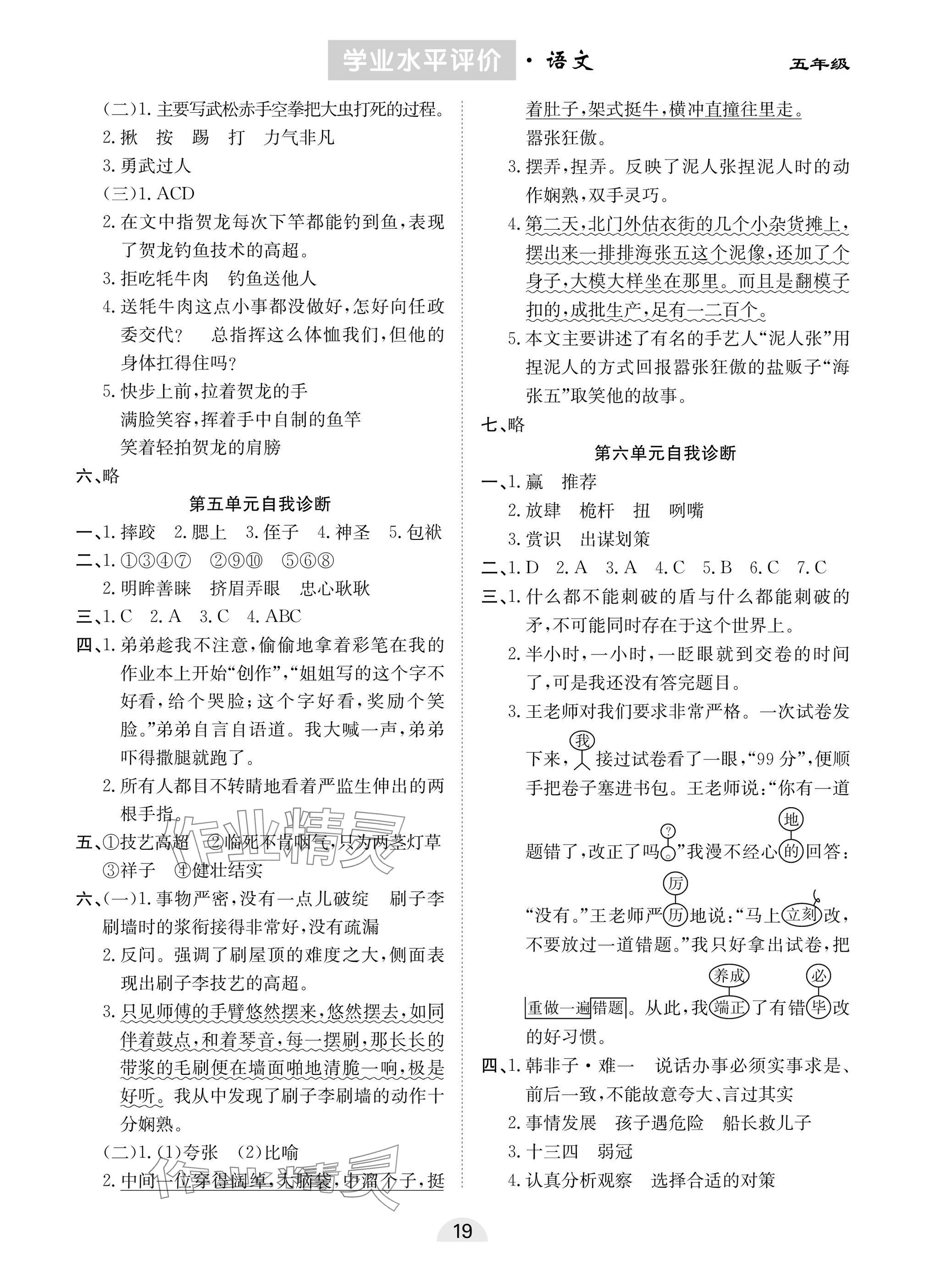 注:目前有些书本章节名称可能整理的还不是很完善,但都是按照顺序排列的,请同学们按照顺序仔细查找。练习册 2025年学业水平评价同步检测卷五年级语文下册人教版 答案主要是用来给同学们做完题方便对答案用的,请勿直接抄袭。