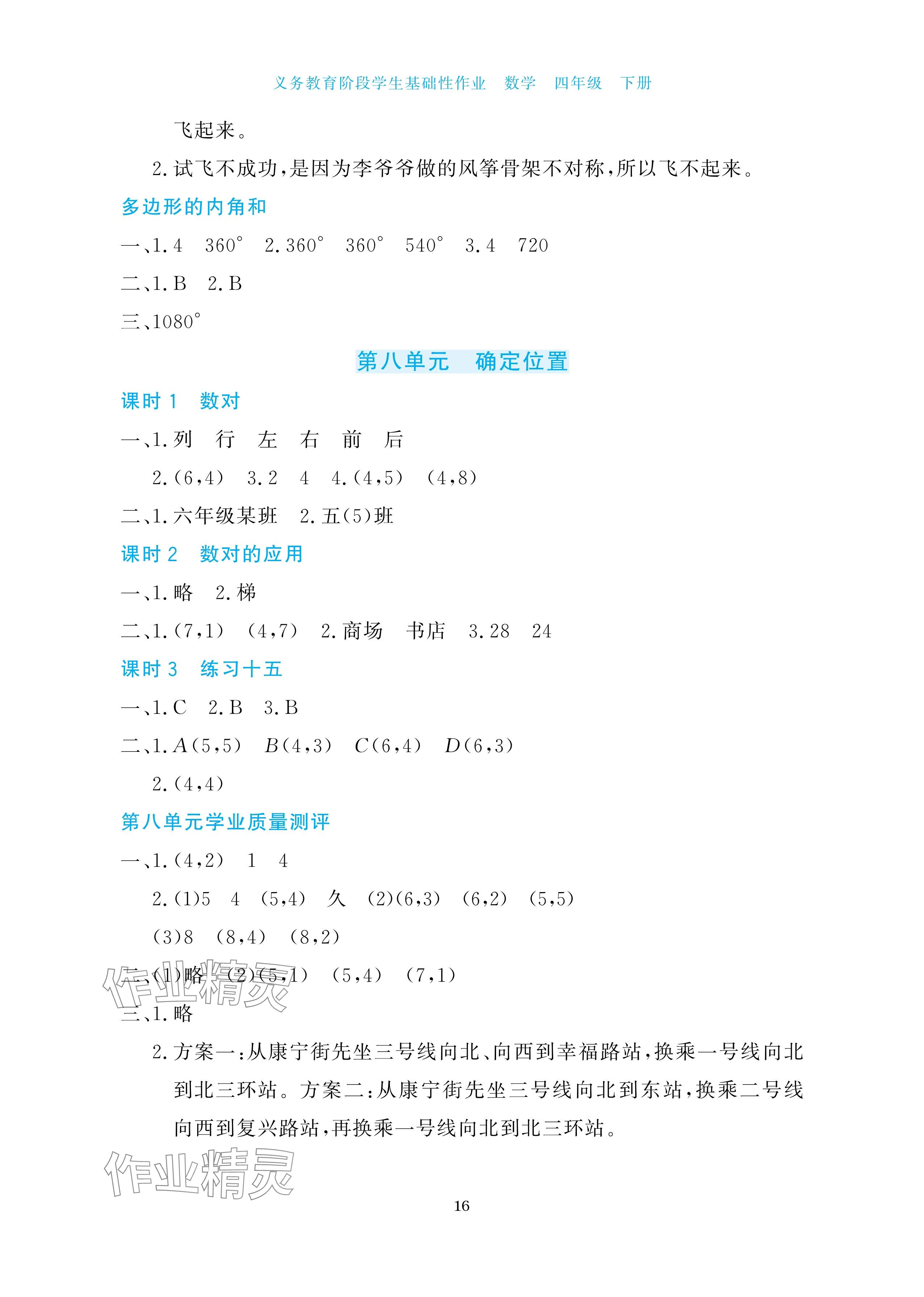 注:目前有些书本章节名称可能整理的还不是很完善,但都是按照顺序排列的,请同学们按照顺序仔细查找。练习册 2025年学生基础性作业四年级数学下册苏教版 答案主要是用来给同学们做完题方便对答案用的,请勿直接抄袭。