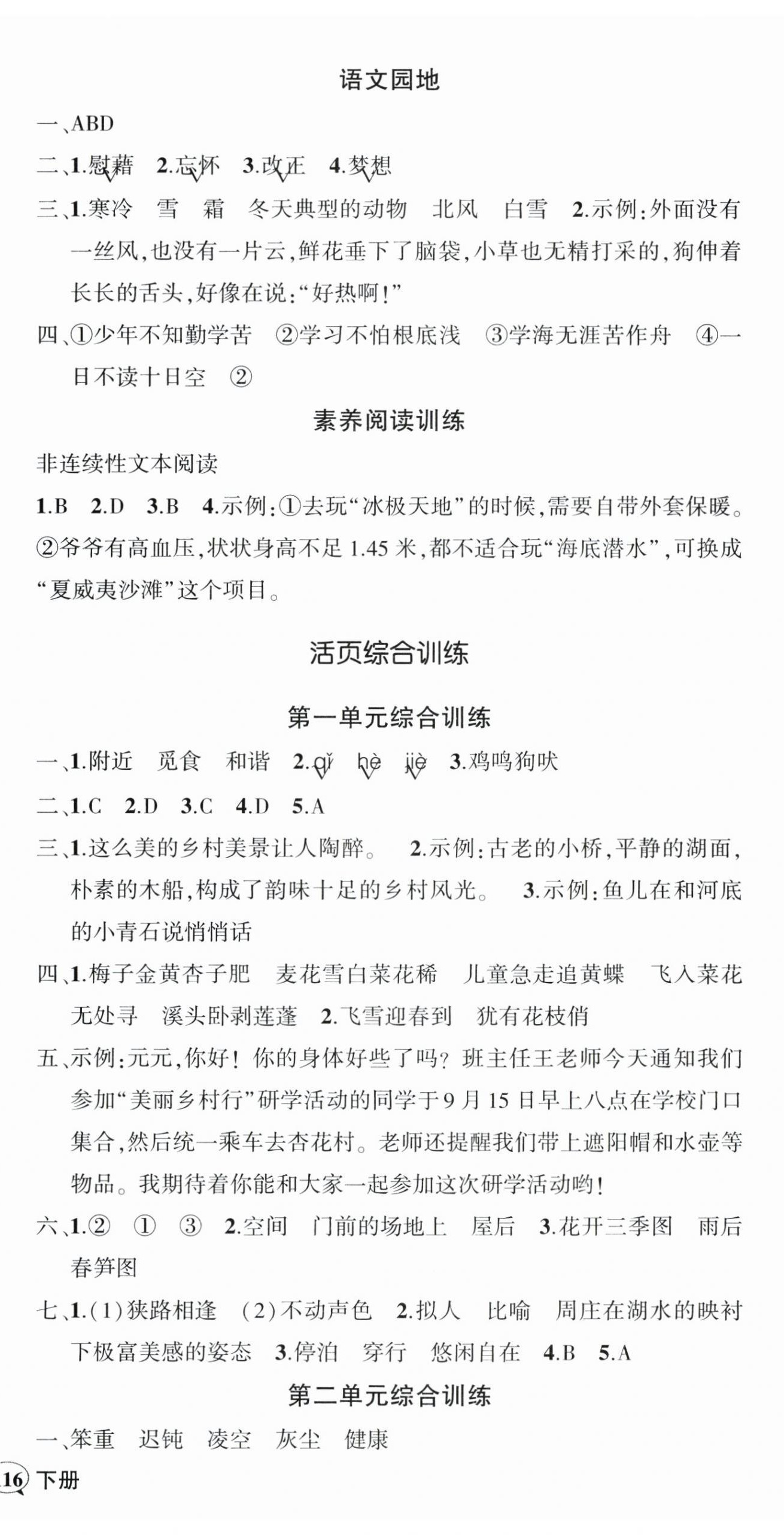 注:目前有些书本章节名称可能整理的还不是很完善,但都是按照顺序排列的,请同学们按照顺序仔细查找。练习册 2025年状元成才路创优作业100分四年级语文下册人教版海南专版 答案主要是用来给同学们做完题方便对答案用的,请勿直接抄袭。