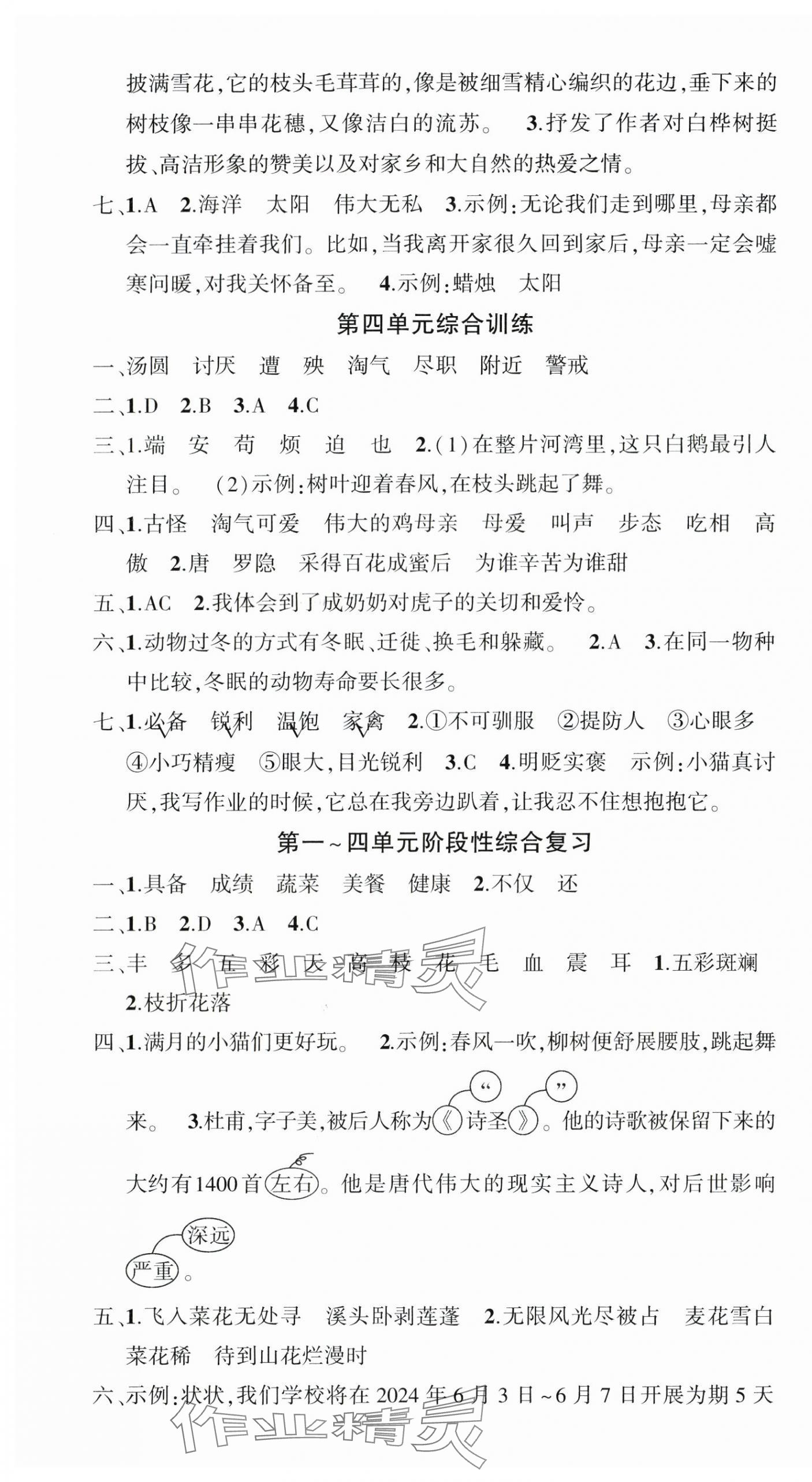 注:目前有些书本章节名称可能整理的还不是很完善,但都是按照顺序排列的,请同学们按照顺序仔细查找。练习册 2025年状元成才路创优作业100分四年级语文下册人教版海南专版 答案主要是用来给同学们做完题方便对答案用的,请勿直接抄袭。
