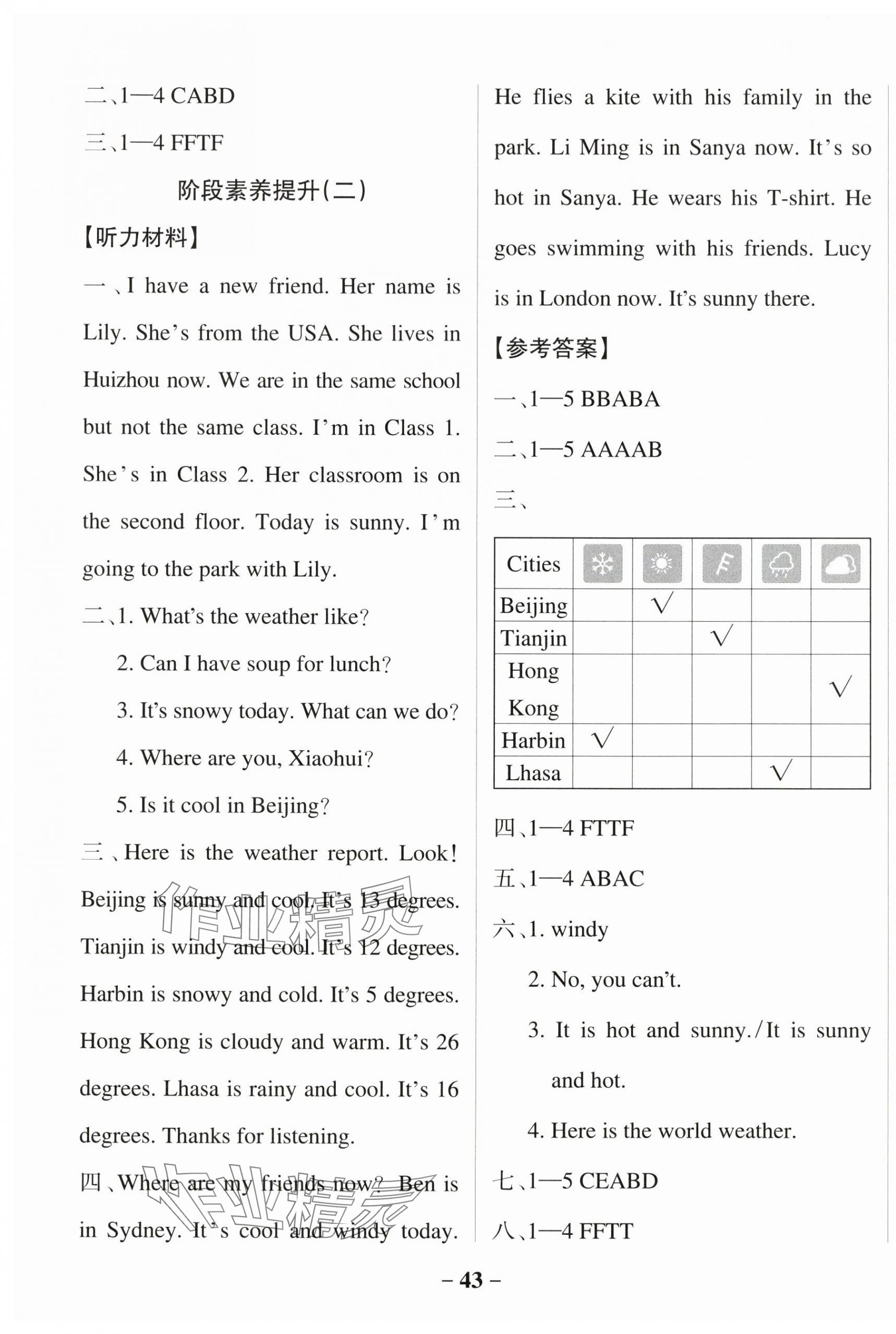 注:目前有些书本章节名称可能整理的还不是很完善,但都是按照顺序排列的,请同学们按照顺序仔细查找。练习册 2025年绿卡小学作业本四年级英语下册人教版惠州专版 答案主要是用来给同学们做完题方便对答案用的,请勿直接抄袭。