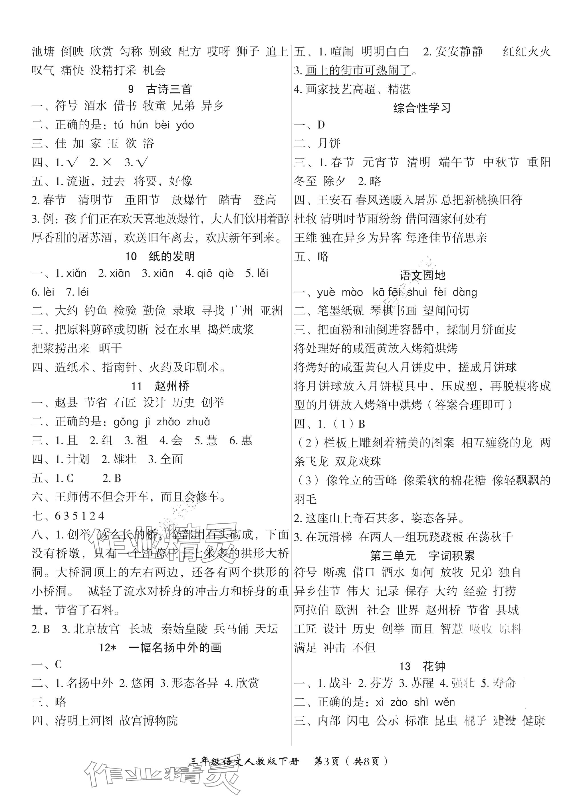 注:目前有些书本章节名称可能整理的还不是很完善,但都是按照顺序排列的,请同学们按照顺序仔细查找。练习册 2025年高效课堂8分钟三年级语文下册人教版 答案主要是用来给同学们做完题方便对答案用的,请勿直接抄袭。