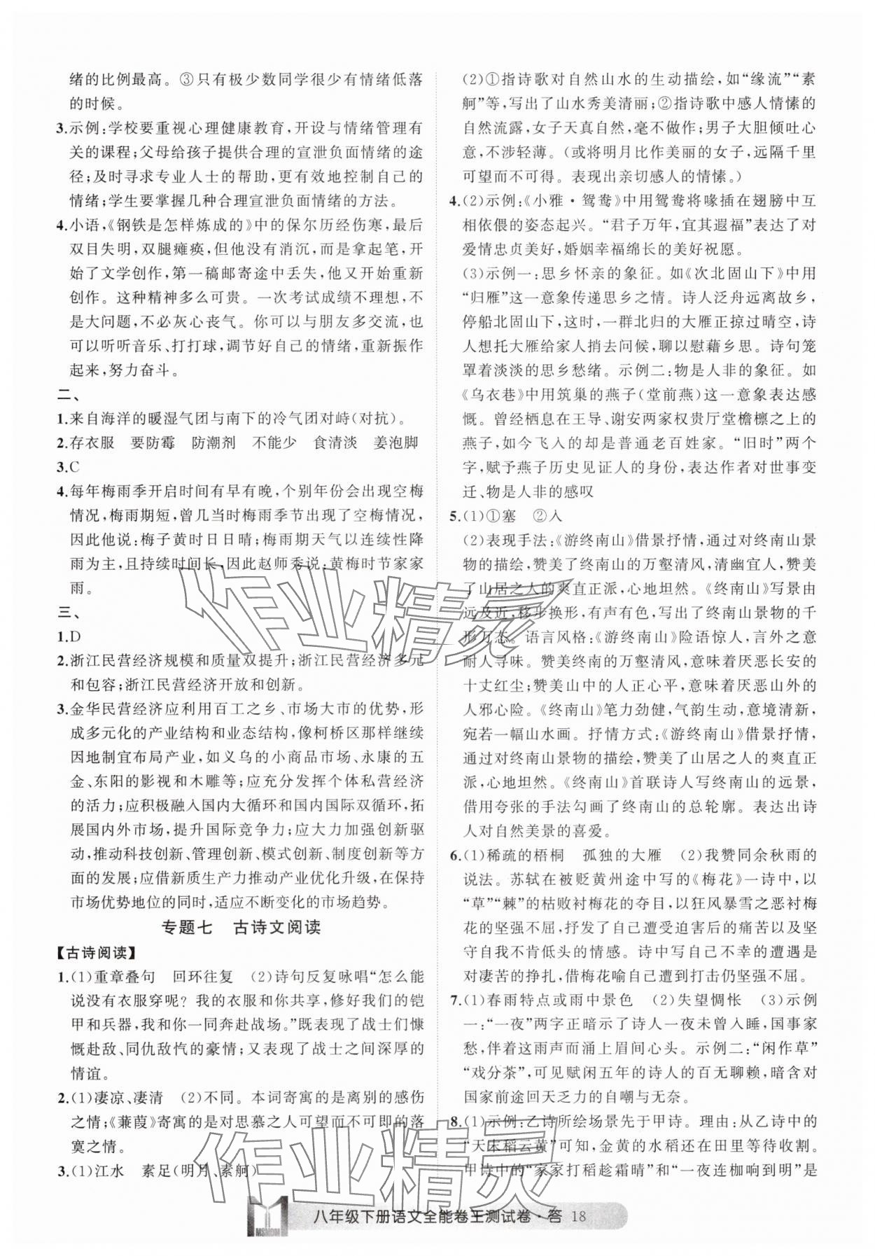 注:目前有些书本章节名称可能整理的还不是很完善,但都是按照顺序排列的,请同学们按照顺序仔细查找。练习册 2025年全能卷王单元测试卷八年级语文下册人教版 答案主要是用来给同学们做完题方便对答案用的,请勿直接抄袭。