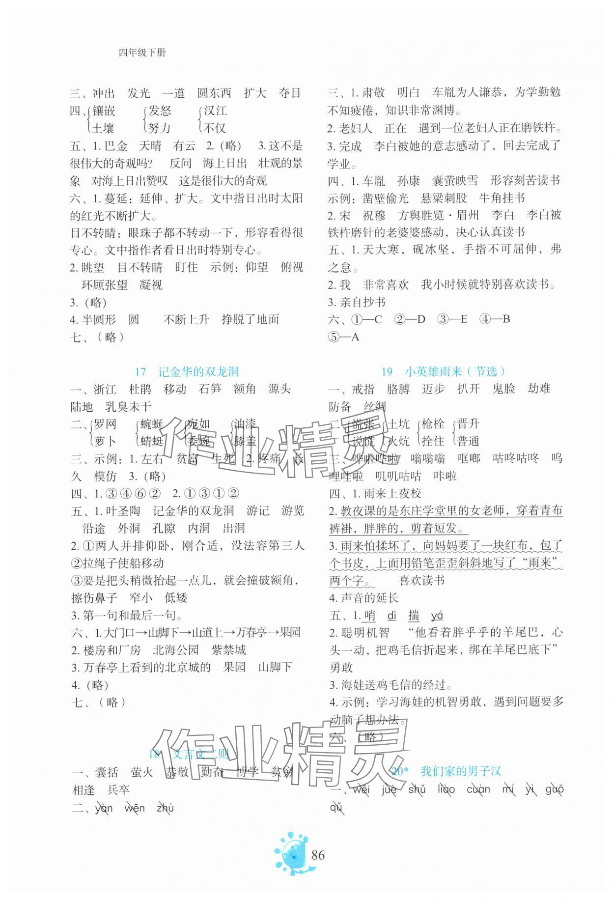 注:目前有些书本章节名称可能整理的还不是很完善,但都是按照顺序排列的,请同学们按照顺序仔细查找。练习册 2025年语文同步学与练四年级下册人教版 答案主要是用来给同学们做完题方便对答案用的,请勿直接抄袭。