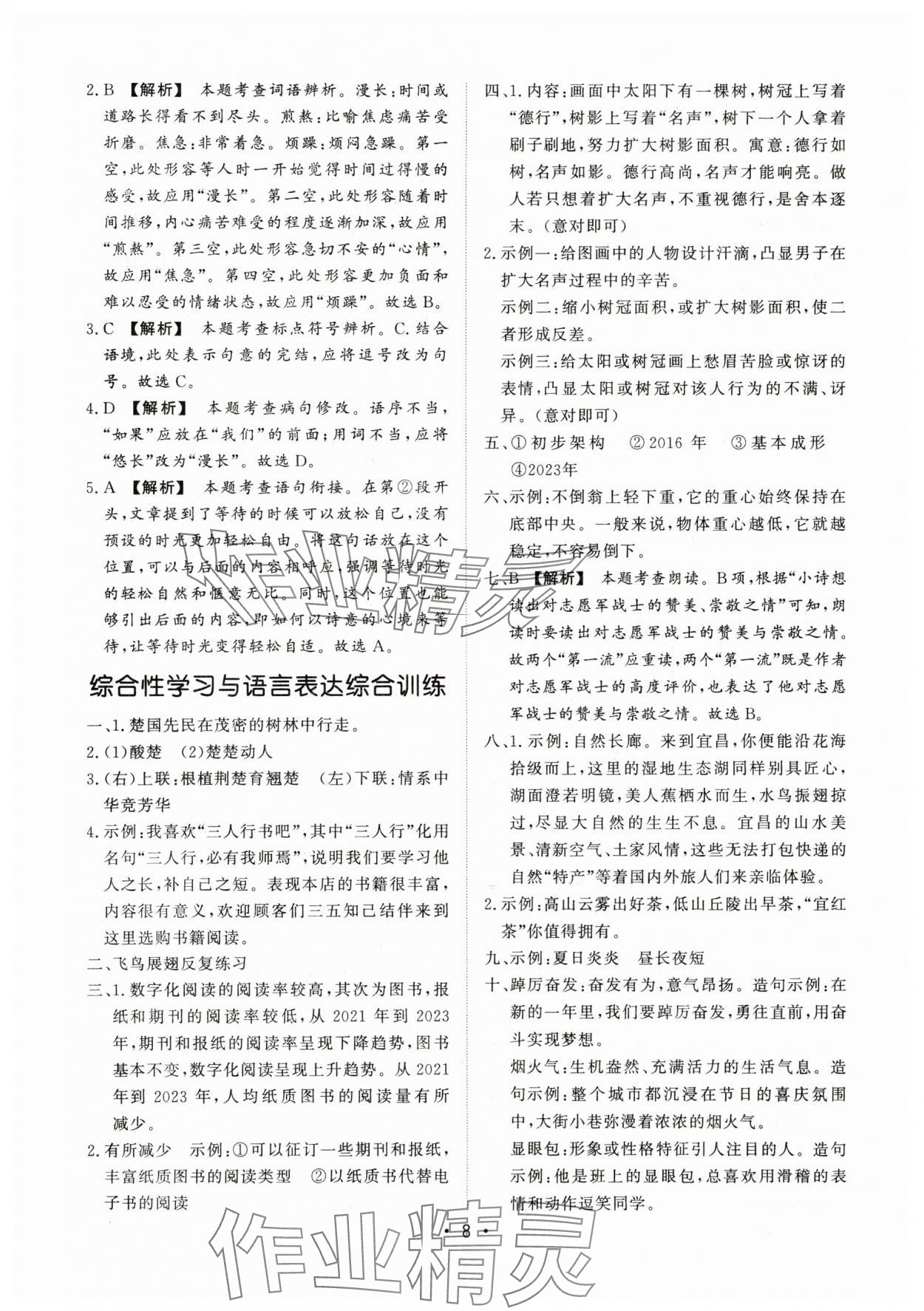 注:目前有些书本章节名称可能整理的还不是很完善,但都是按照顺序排列的,请同学们按照顺序仔细查找。练习册 2025年湖北新中考备考与指导语文 答案主要是用来给同学们做完题方便对答案用的,请勿直接抄袭。