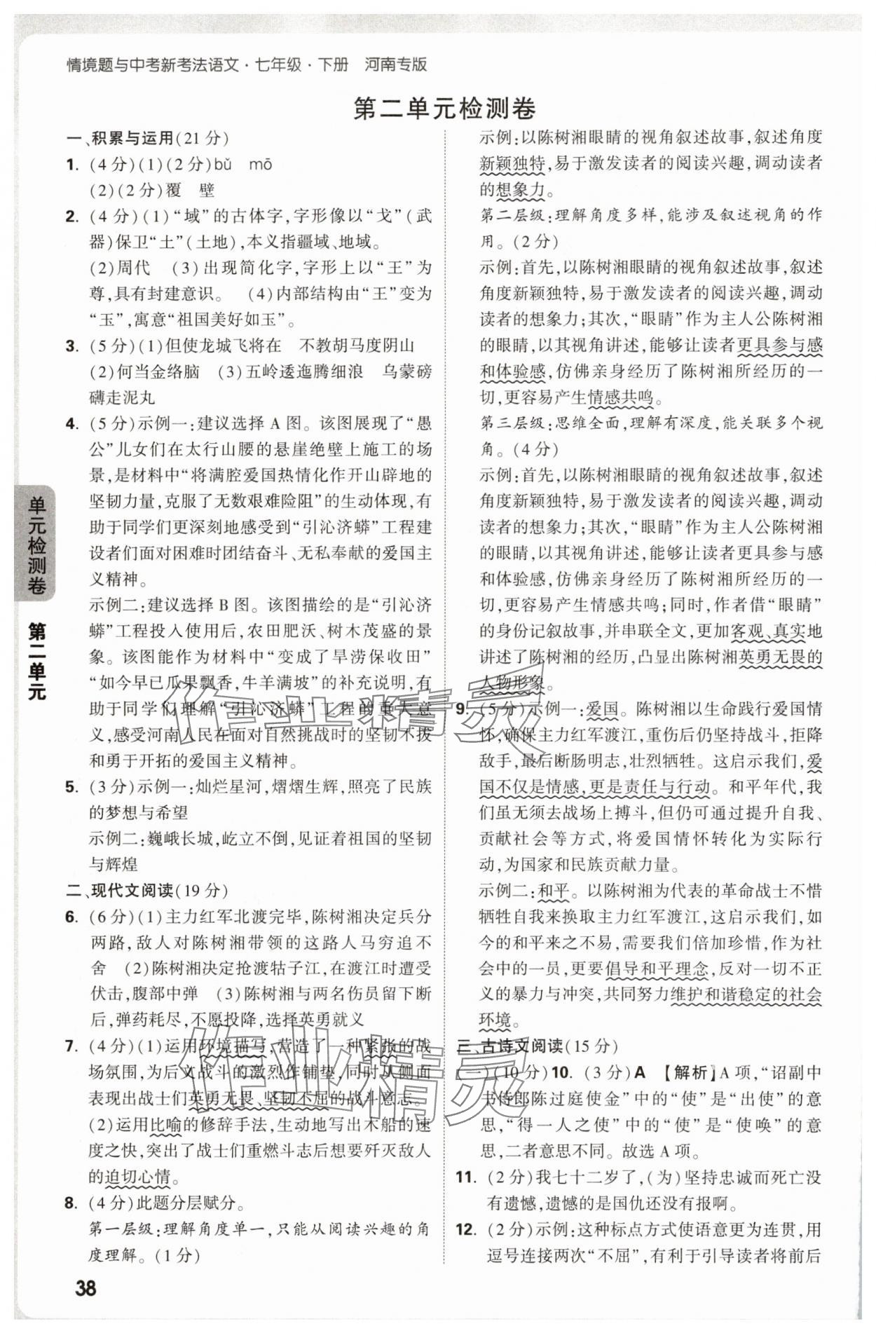 2025年万唯中考情境题七年级语文下册人教版河南专版