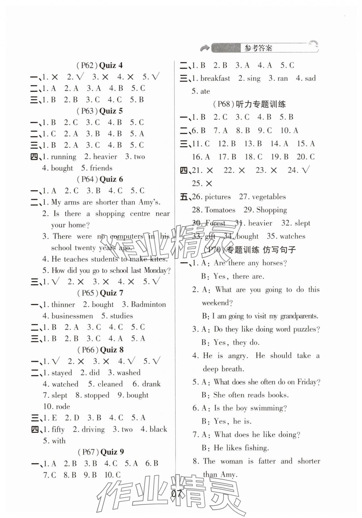 精英家教网> 2025年名师英语课课通六年级下册人教版顺德专版 > 参考答案第7页 参考答案