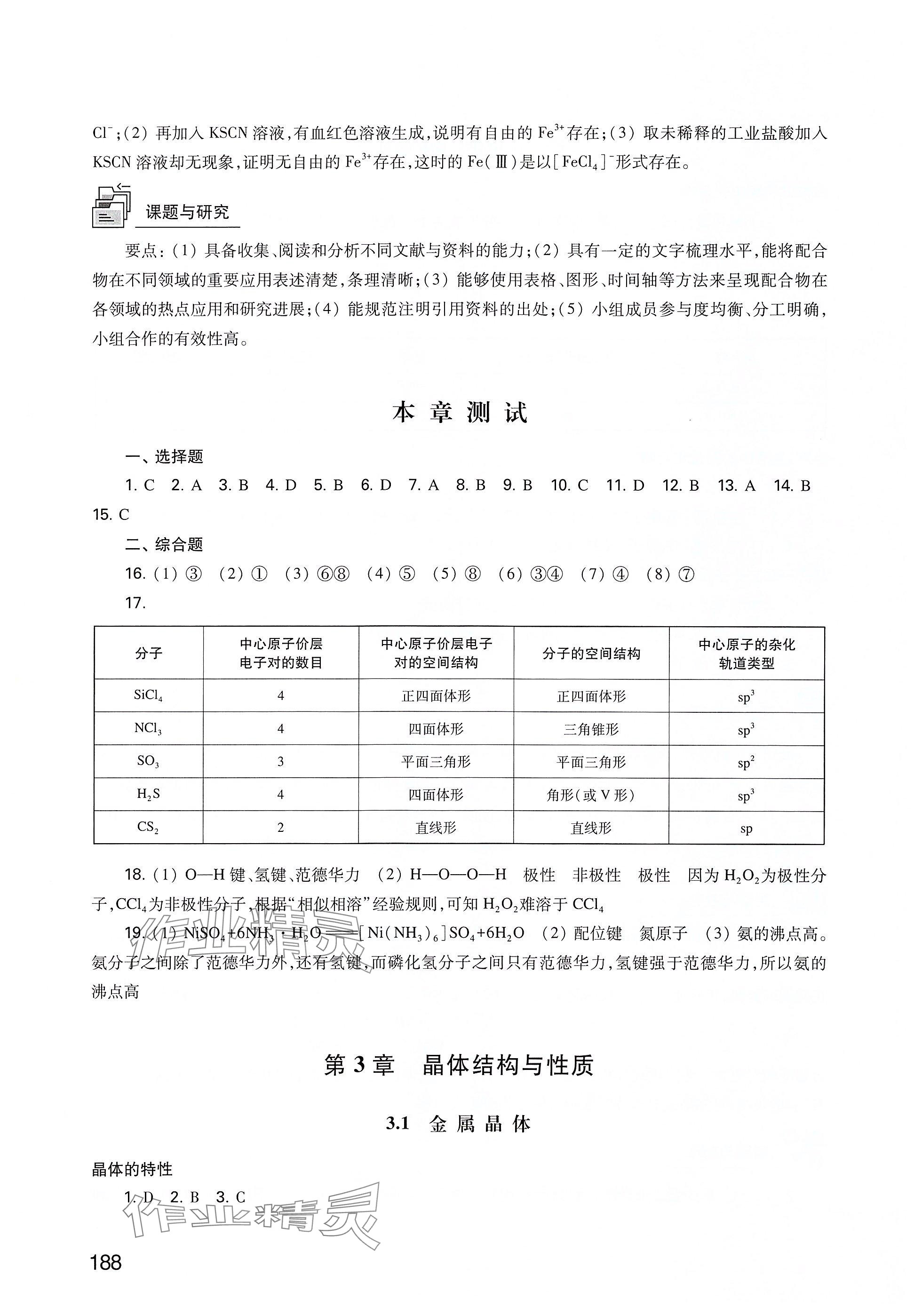 注:目前有些书本章节名称可能整理的还不是很完善,但都是按照顺序排列的,请同学们按照顺序仔细查找。练习册 2025年练习部分高中化学选择性必修2沪科版 答案主要是用来给同学们做完题方便对答案用的,请勿直接抄袭。