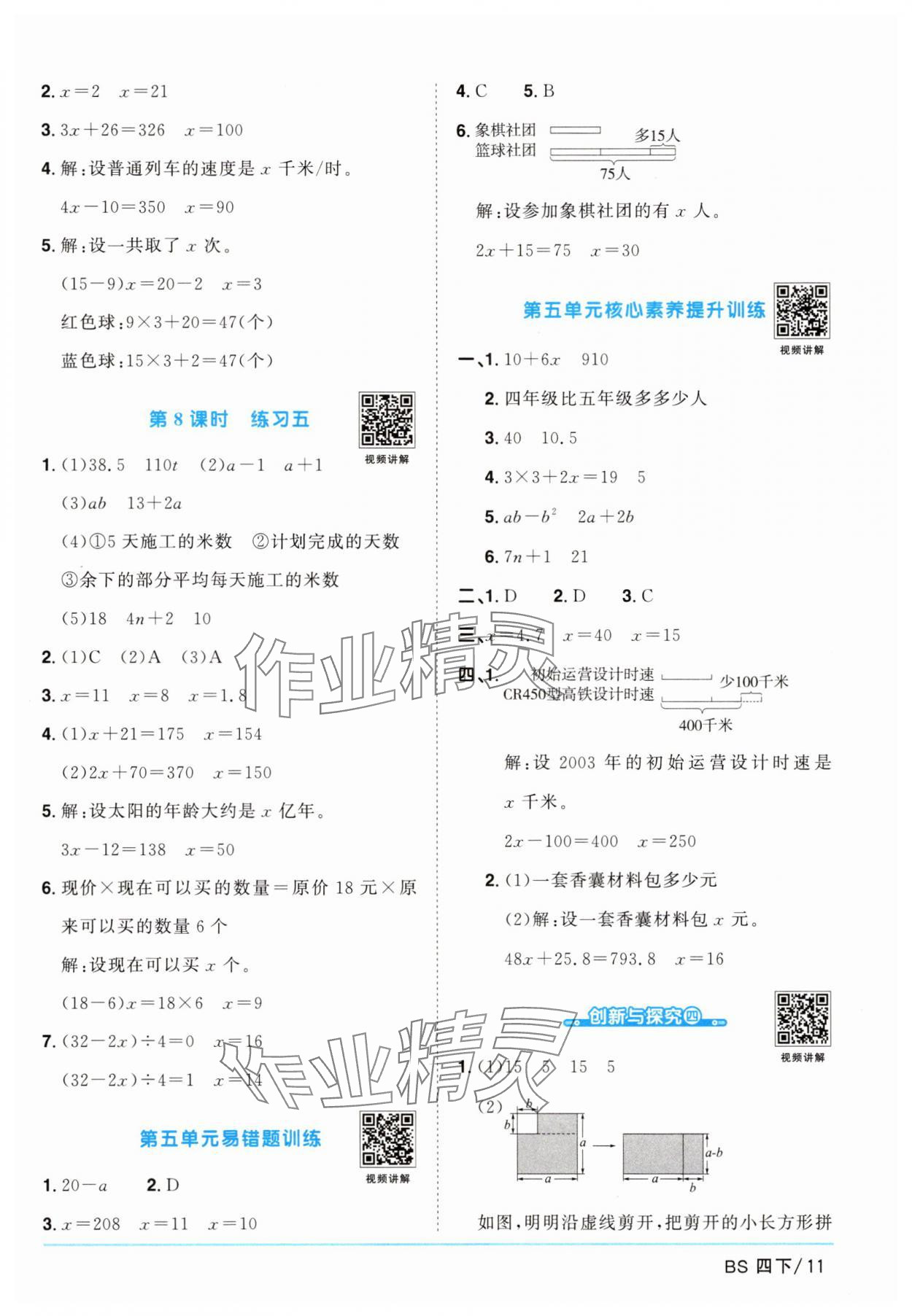 注:目前有些书本章节名称可能整理的还不是很完善,但都是按照顺序排列的,请同学们按照顺序仔细查找。练习册 2025年阳光同学课时提优训练四年级数学下册北师大版 答案主要是用来给同学们做完题方便对答案用的,请勿直接抄袭。
