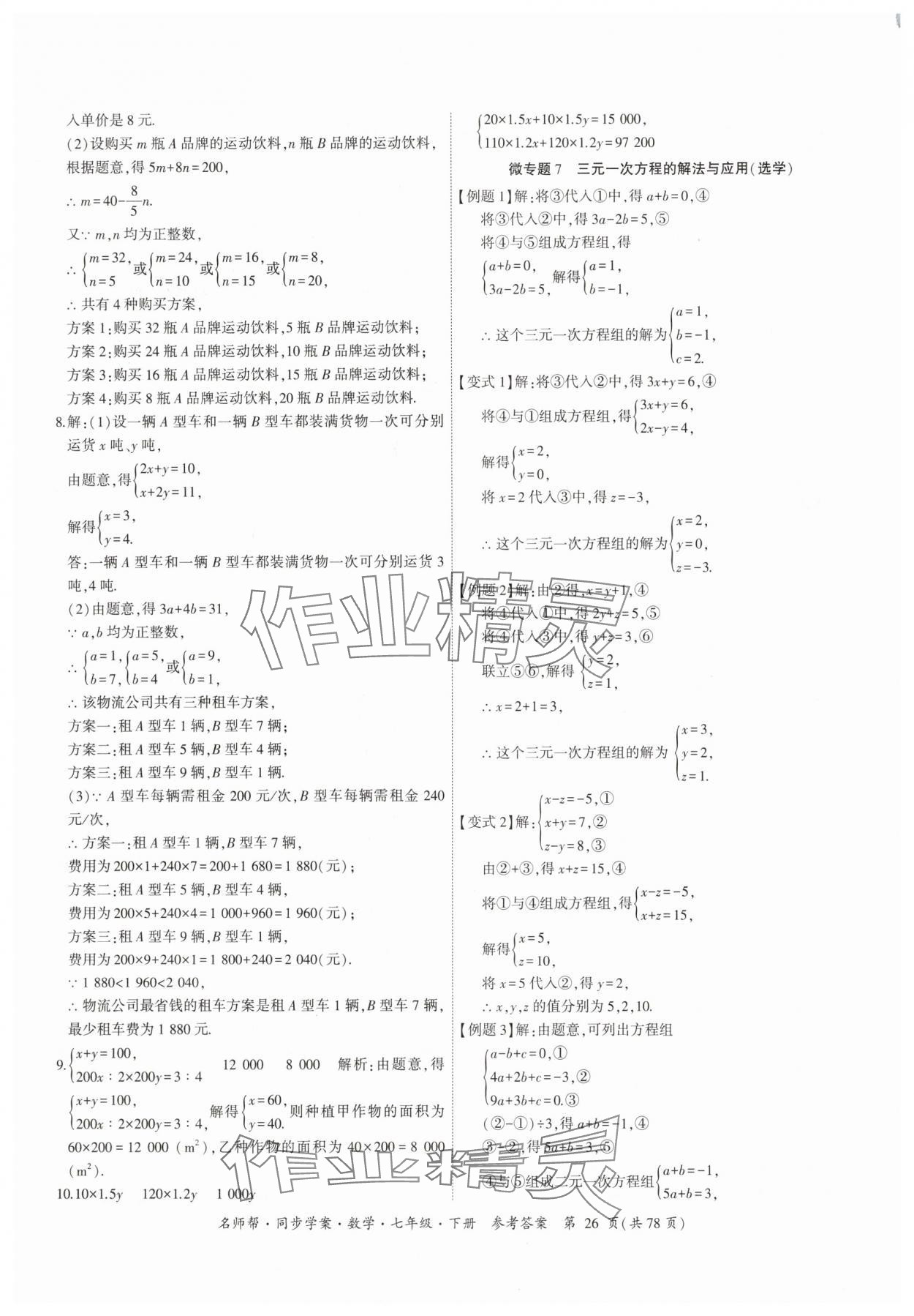注:目前有些书本章节名称可能整理的还不是很完善,但都是按照顺序排列的,请同学们按照顺序仔细查找。练习册 2025年名师帮同步学案七年级数学下册人教版 答案主要是用来给同学们做完题方便对答案用的,请勿直接抄袭。