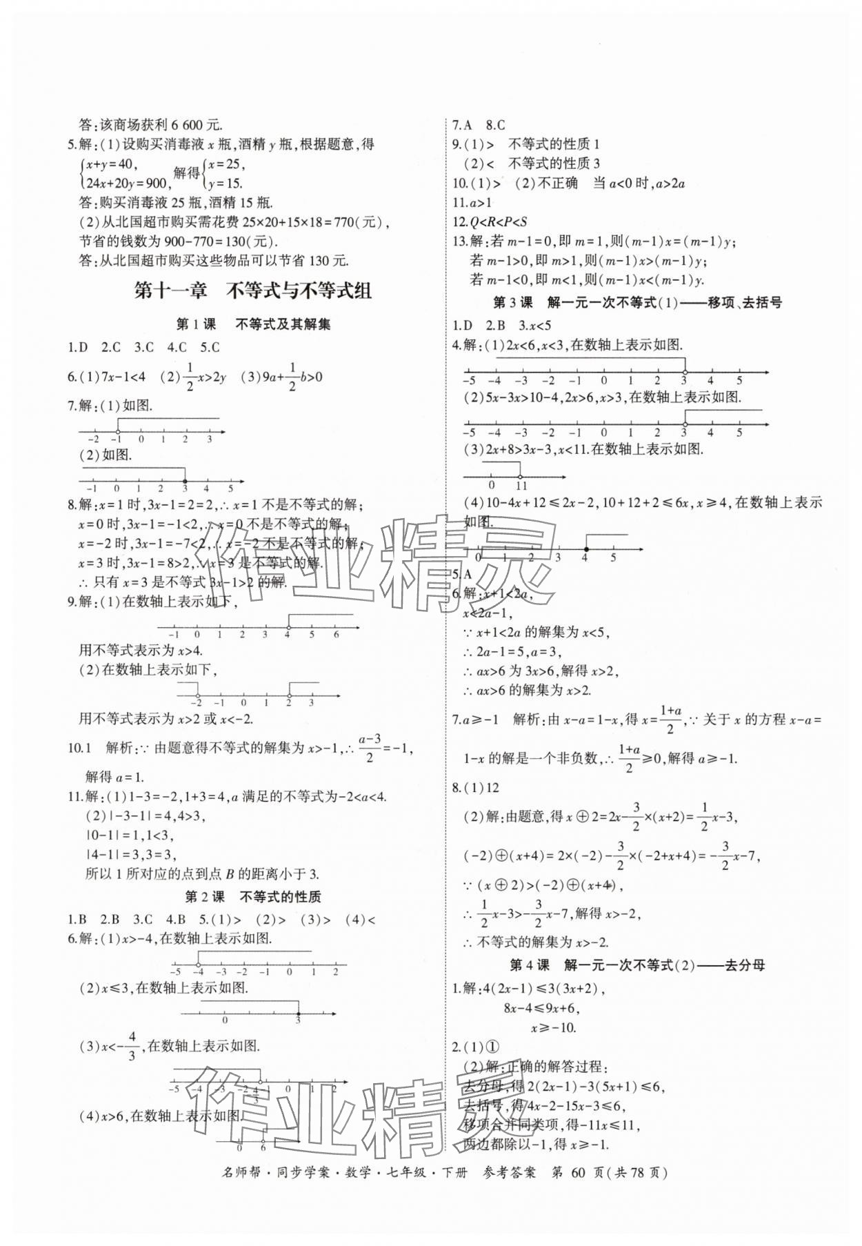 注:目前有些书本章节名称可能整理的还不是很完善,但都是按照顺序排列的,请同学们按照顺序仔细查找。练习册 2025年名师帮同步学案七年级数学下册人教版 答案主要是用来给同学们做完题方便对答案用的,请勿直接抄袭。