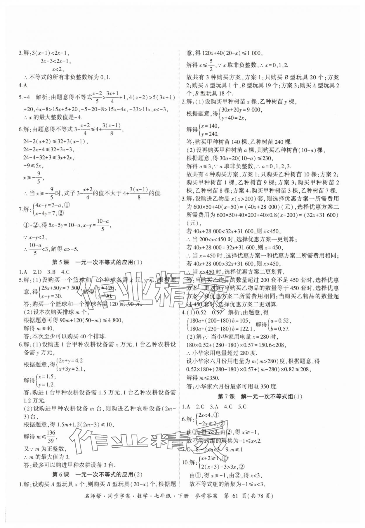 注:目前有些书本章节名称可能整理的还不是很完善,但都是按照顺序排列的,请同学们按照顺序仔细查找。练习册 2025年名师帮同步学案七年级数学下册人教版 答案主要是用来给同学们做完题方便对答案用的,请勿直接抄袭。