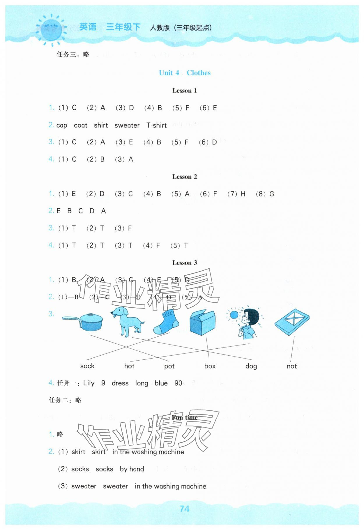 注:目前有些书本章节名称可能整理的还不是很完善,但都是按照顺序排列的,请同学们按照顺序仔细查找。练习册 2025年新课程能力培养三年级英语下册人教版 答案主要是用来给同学们做完题方便对答案用的,请勿直接抄袭。