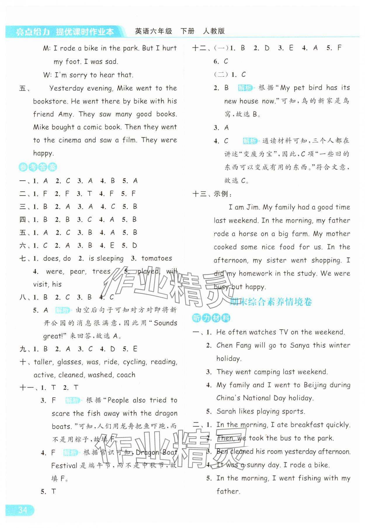 注:目前有些书本章节名称可能整理的还不是很完善,但都是按照顺序排列的,请同学们按照顺序仔细查找。练习册 2025年亮点给力提优课时作业本六年级英语下册人教版浙江专版 答案主要是用来给同学们做完题方便对答案用的,请勿直接抄袭。