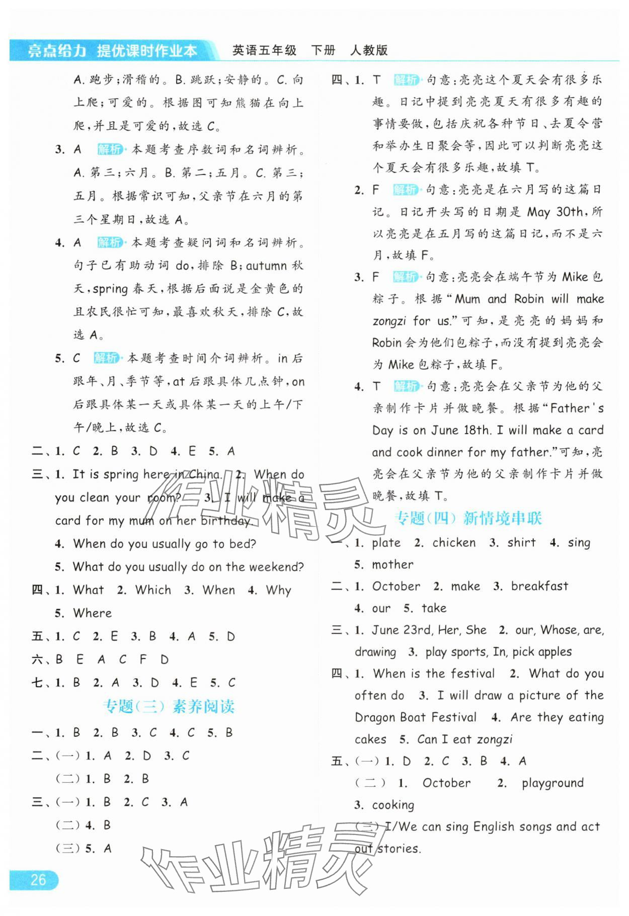 2025年亮点给力提优课时作业本五年级英语下册人教版浙江专版