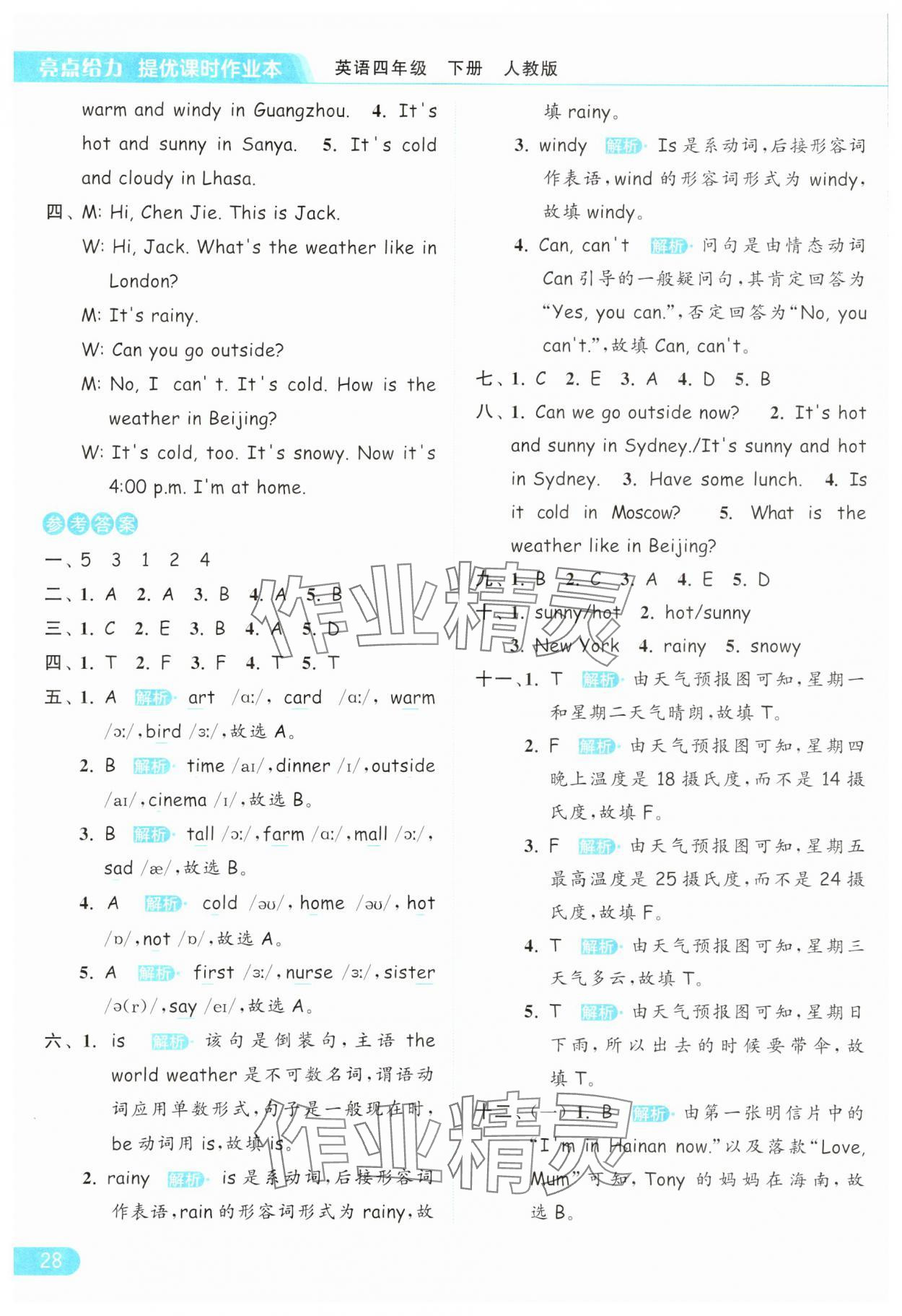 注:目前有些书本章节名称可能整理的还不是很完善,但都是按照顺序排列的,请同学们按照顺序仔细查找。练习册 2025年亮点给力提优课时作业本四年级英语下册人教版浙江专版 答案主要是用来给同学们做完题方便对答案用的,请勿直接抄袭。