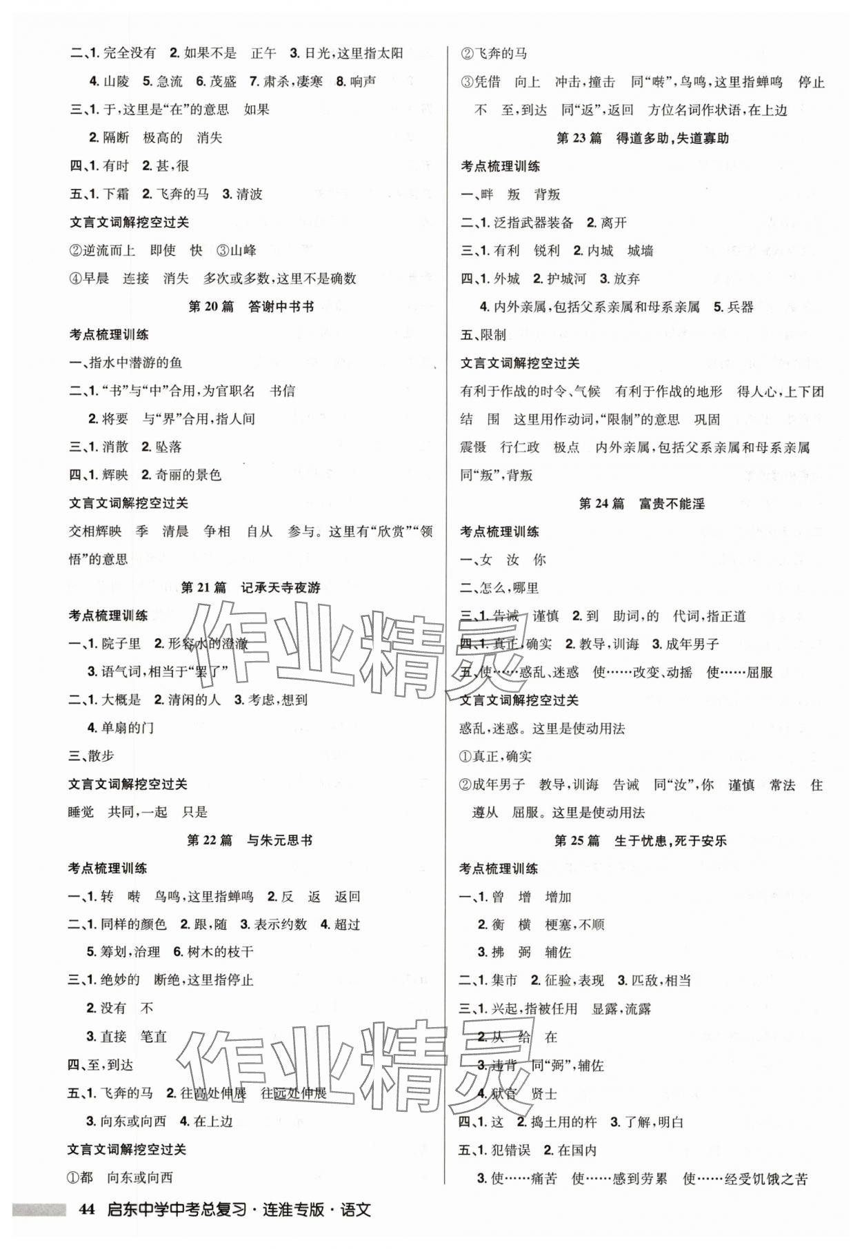 注:目前有些书本章节名称可能整理的还不是很完善,但都是按照顺序排列的,请同学们按照顺序仔细查找。练习册 2025年启东中学中考总复习语文连淮专版 答案主要是用来给同学们做完题方便对答案用的,请勿直接抄袭。