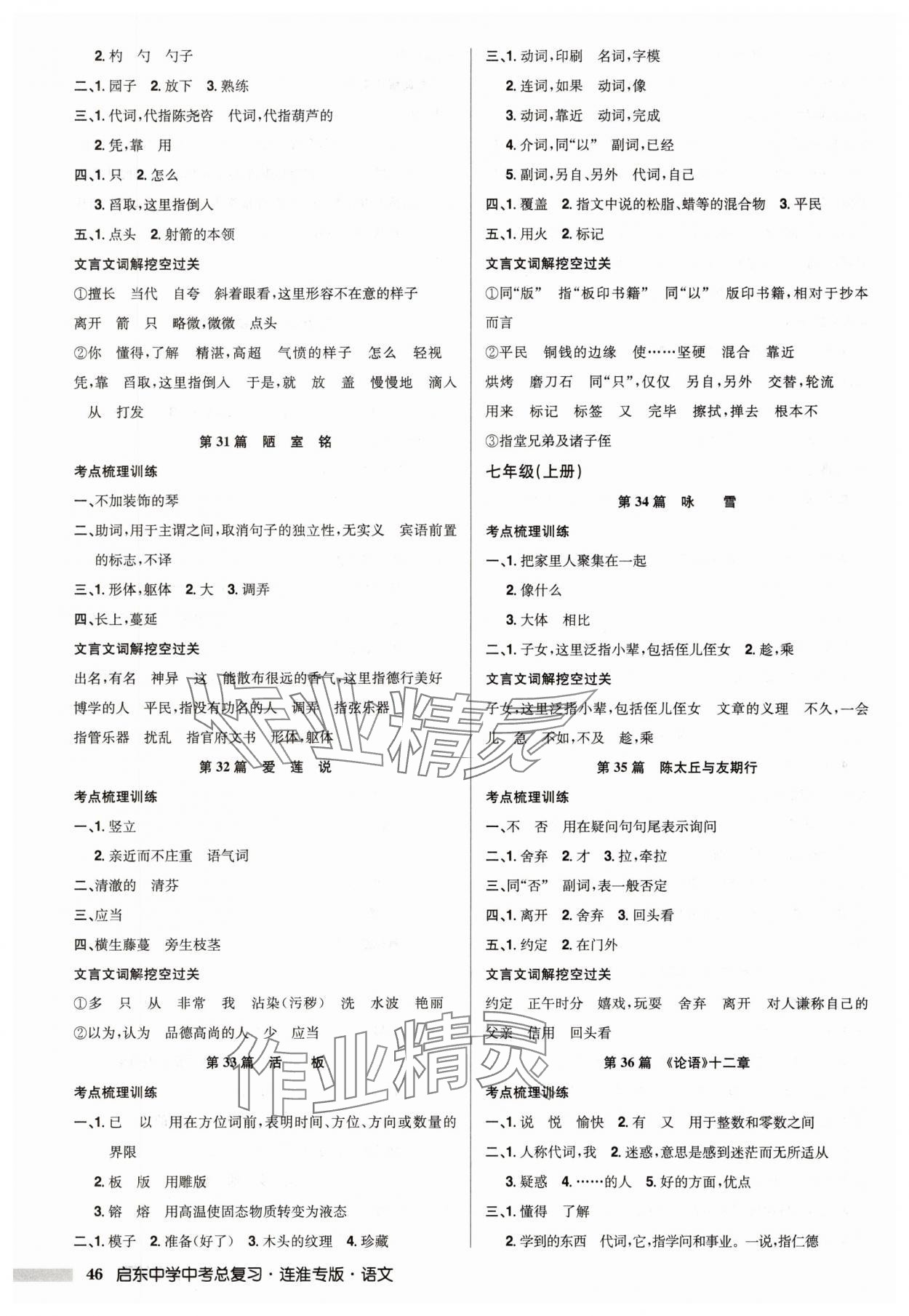 注:目前有些书本章节名称可能整理的还不是很完善,但都是按照顺序排列的,请同学们按照顺序仔细查找。练习册 2025年启东中学中考总复习语文连淮专版 答案主要是用来给同学们做完题方便对答案用的,请勿直接抄袭。