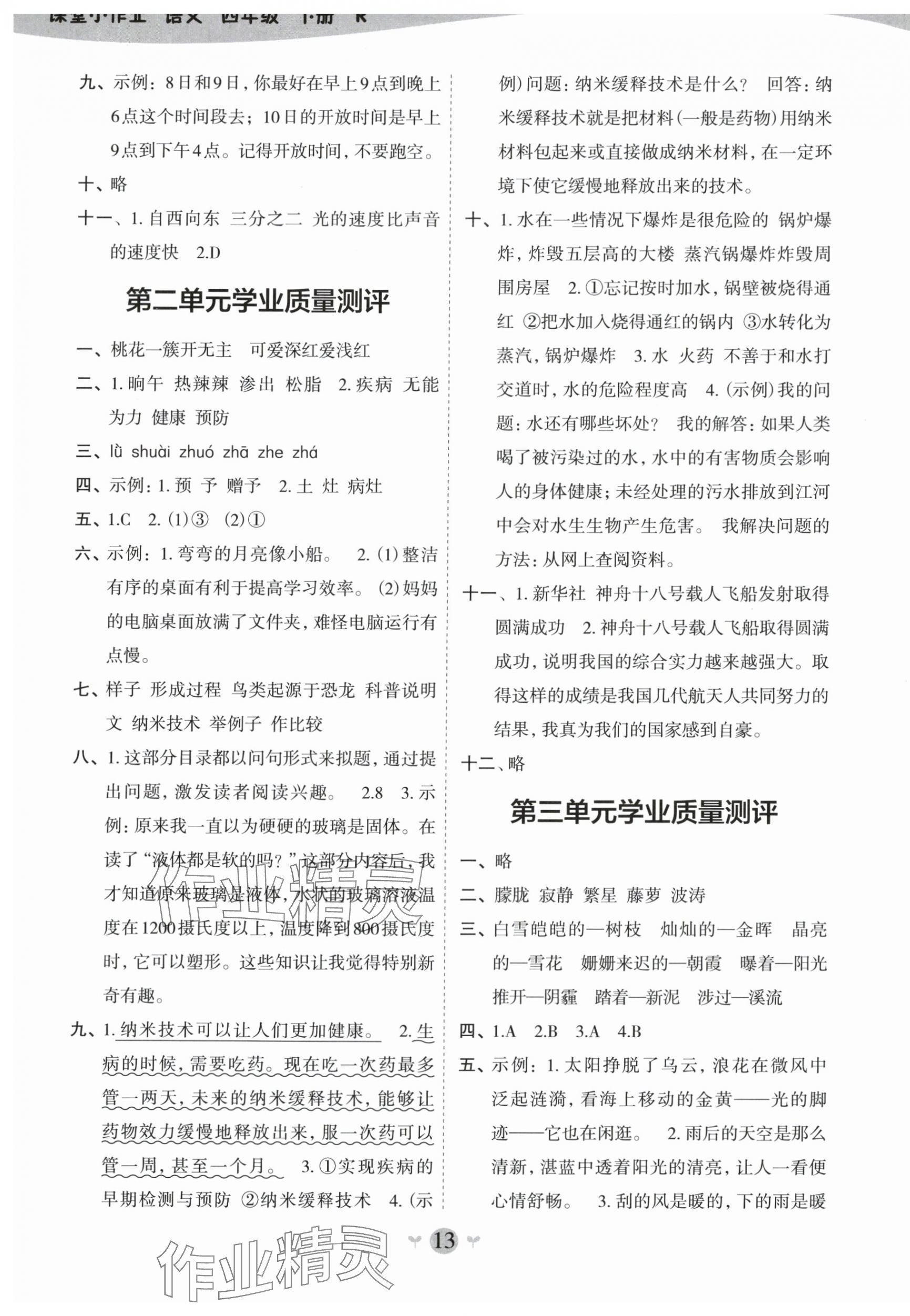 注:目前有些书本章节名称可能整理的还不是很完善,但都是按照顺序排列的,请同学们按照顺序仔细查找。练习册 2025年课堂小作业四年级语文下册人教版 答案主要是用来给同学们做完题方便对答案用的,请勿直接抄袭。