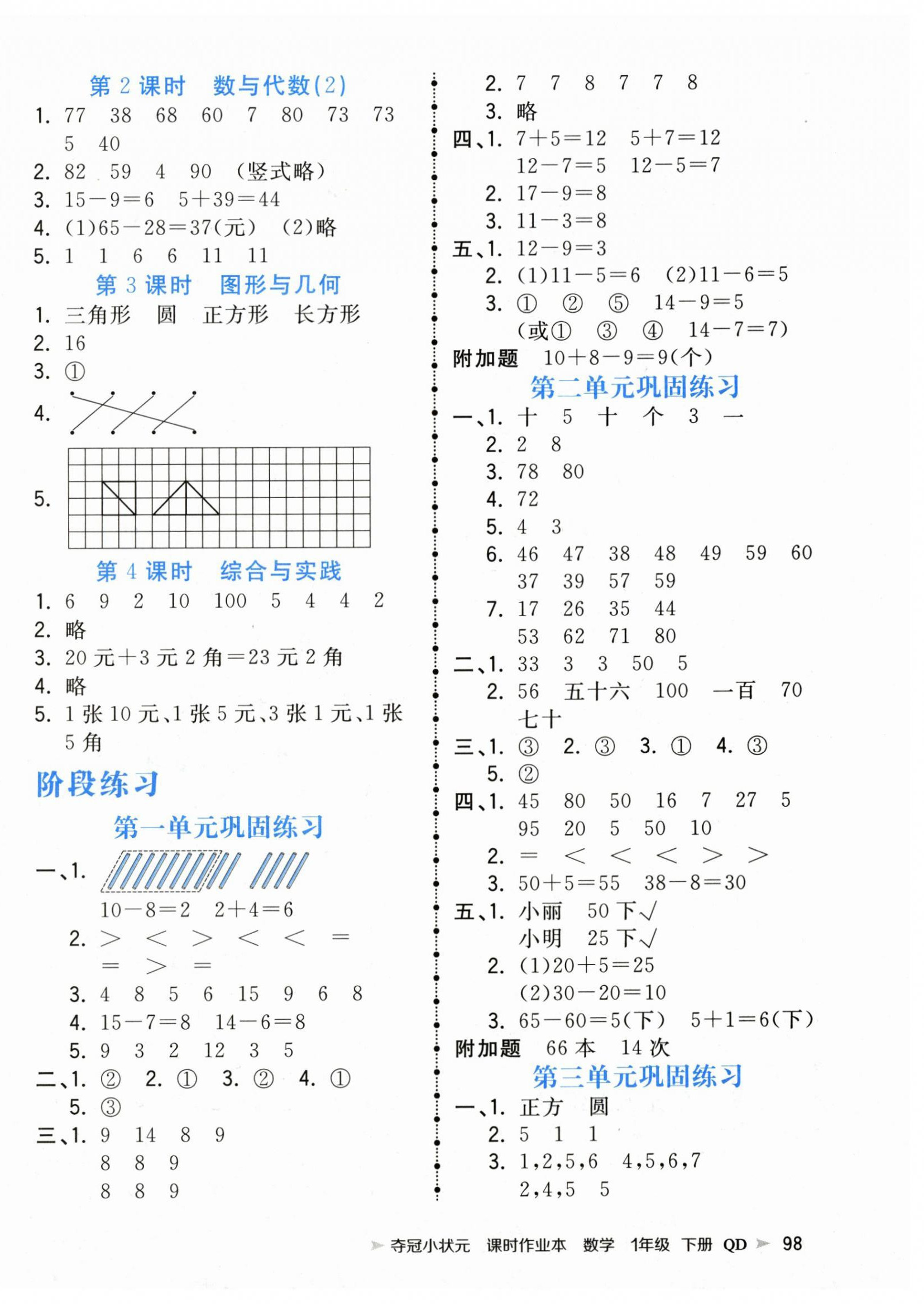 注:目前有些书本章节名称可能整理的还不是很完善,但都是按照顺序排列的,请同学们按照顺序仔细查找。练习册 2025年夺冠小状元课时作业本一年级数学下册青岛版 答案主要是用来给同学们做完题方便对答案用的,请勿直接抄袭。