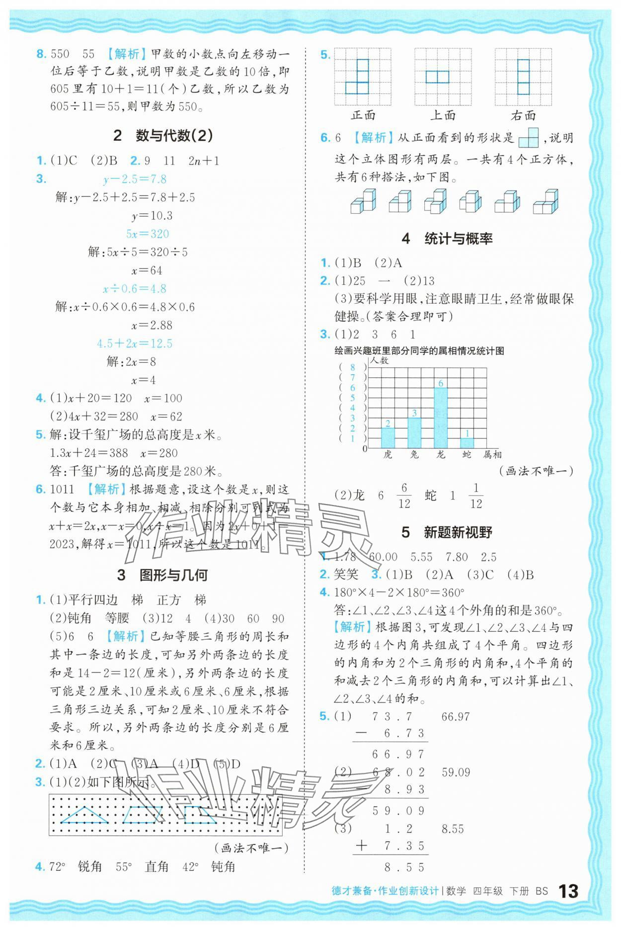 注:目前有些书本章节名称可能整理的还不是很完善,但都是按照顺序排列的,请同学们按照顺序仔细查找。练习册 2025年王朝霞德才兼备作业创新设计四年级数学下册北师大版 答案主要是用来给同学们做完题方便对答案用的,请勿直接抄袭。