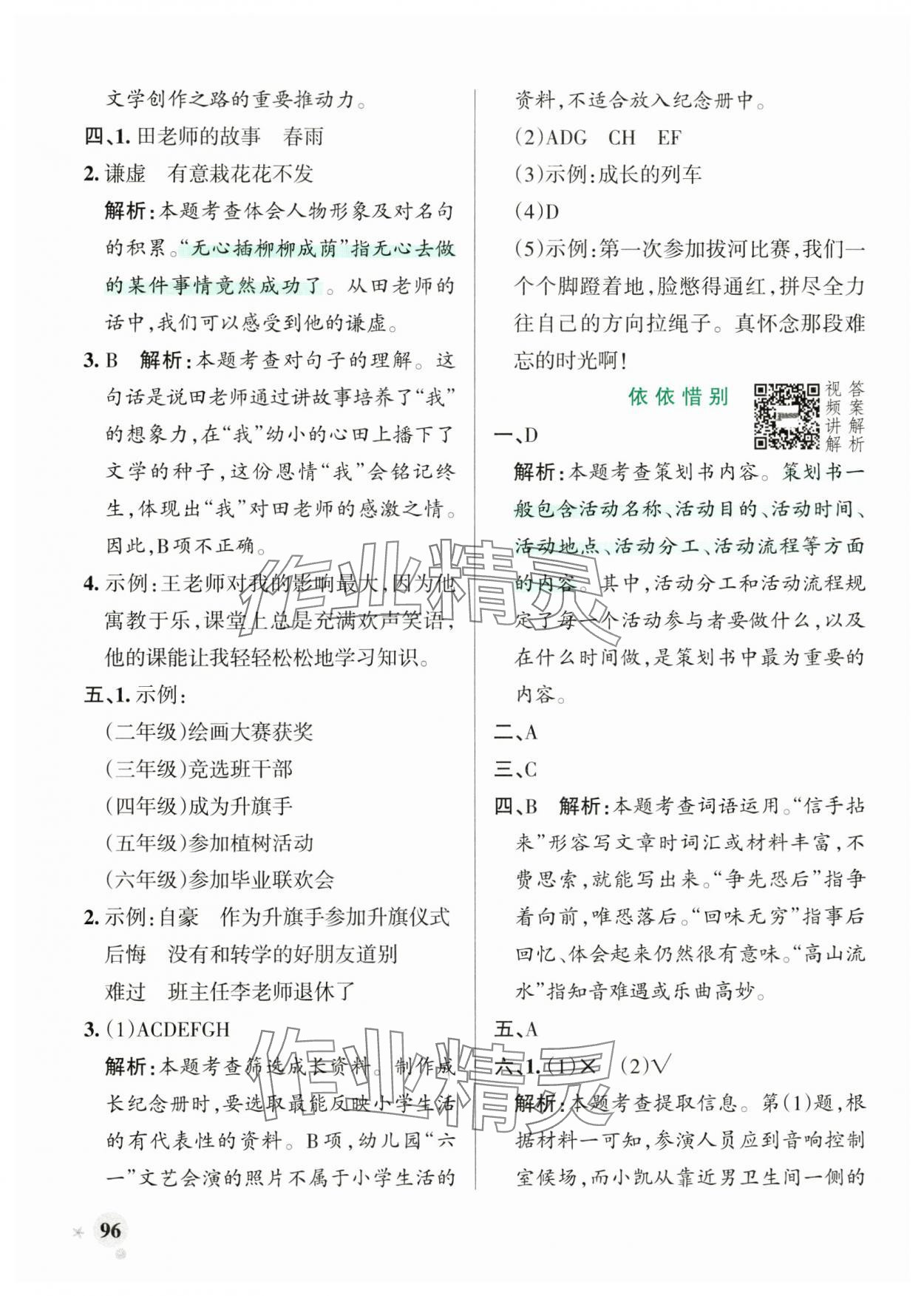 注:目前有些书本章节名称可能整理的还不是很完善,但都是按照顺序排列的,请同学们按照顺序仔细查找。练习册 2025年绿卡小学作业本六年级语文下册人教版河南专版 答案主要是用来给同学们做完题方便对答案用的,请勿直接抄袭。