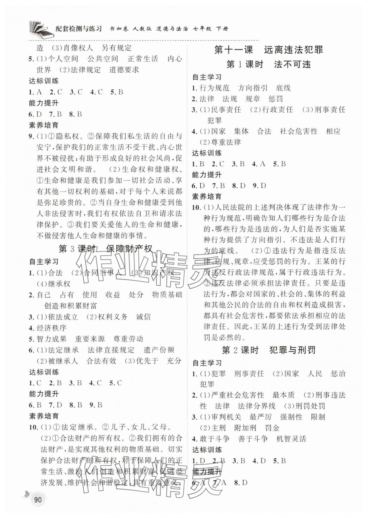 注:目前有些书本章节名称可能整理的还不是很完善,但都是按照顺序排列的,请同学们按照顺序仔细查找。练习册 2025年配套检测与练习七年级道德与法治下册人教版 答案主要是用来给同学们做完题方便对答案用的,请勿直接抄袭。