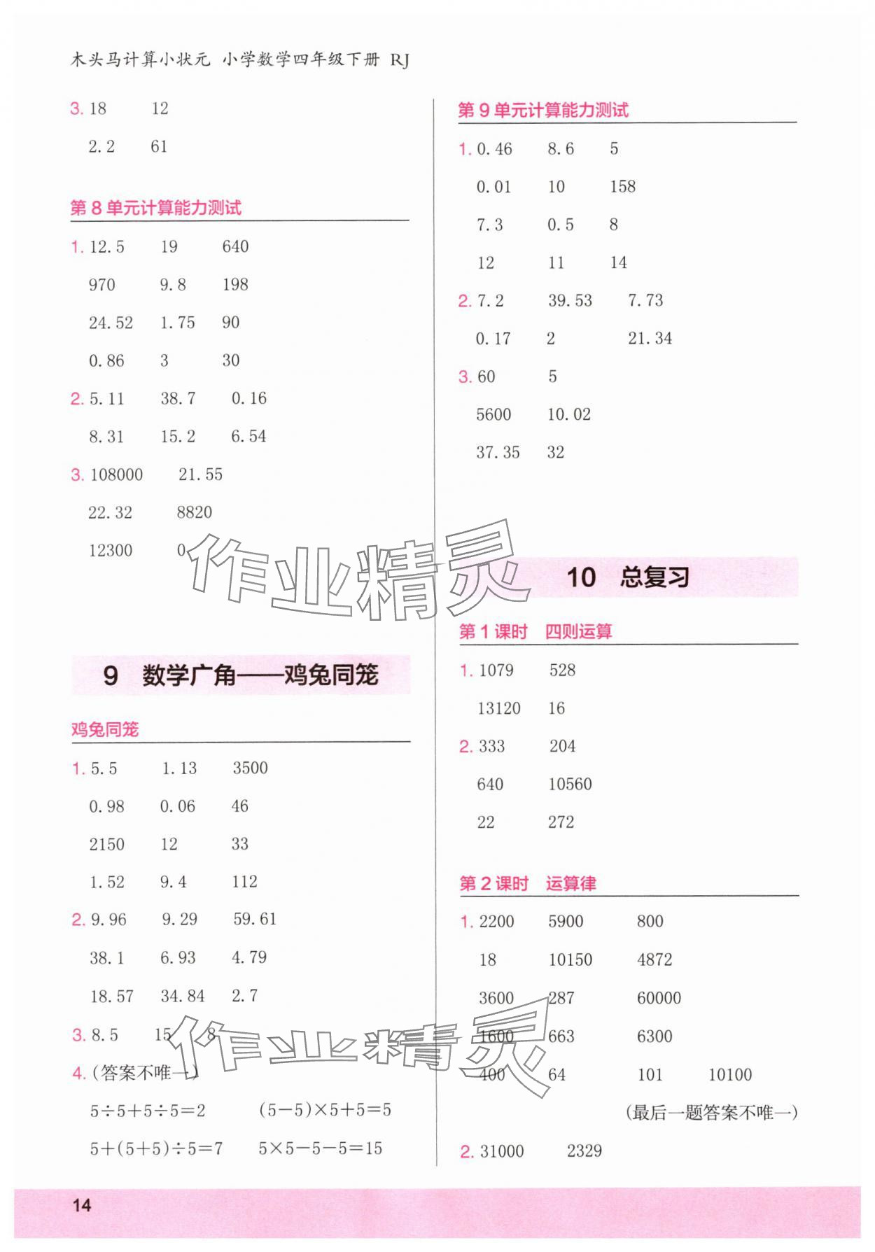 注:目前有些书本章节名称可能整理的还不是很完善,但都是按照顺序排列的,请同学们按照顺序仔细查找。练习册 2025年木头马计算小状元四年级数学下册人教版福建专版 答案主要是用来给同学们做完题方便对答案用的,请勿直接抄袭。