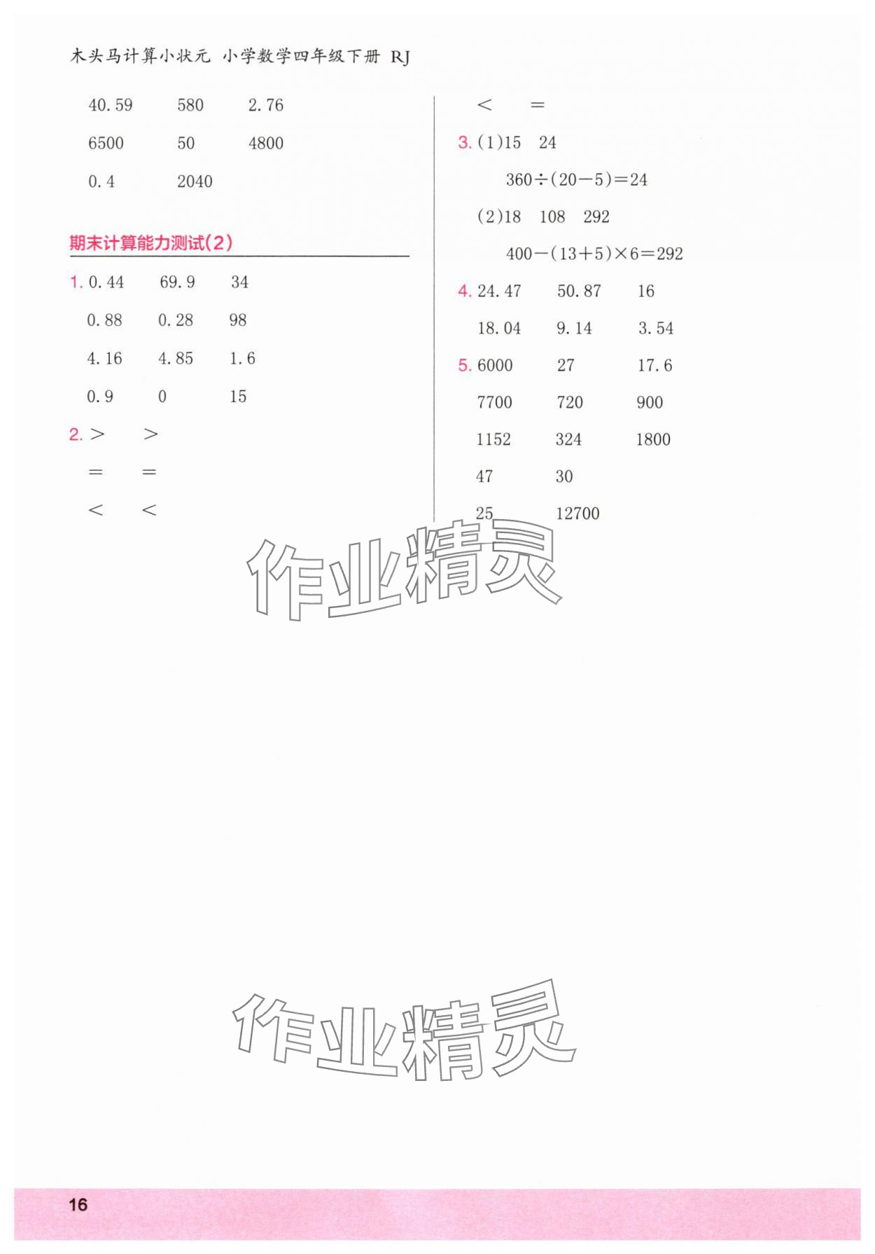 2025年木头马计算小状元四年级数学下册人教版福建专版