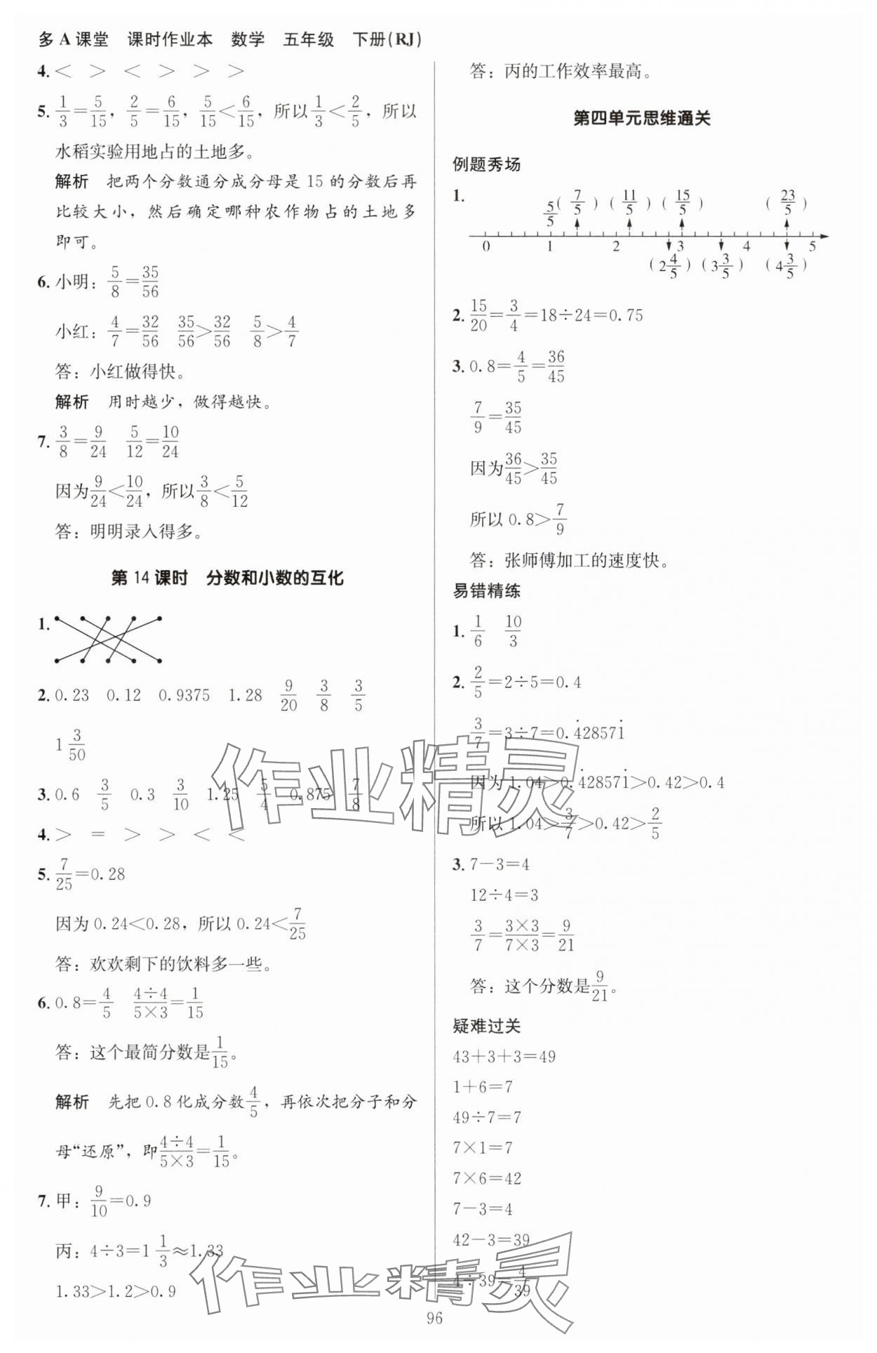 注:目前有些书本章节名称可能整理的还不是很完善,但都是按照顺序排列的,请同学们按照顺序仔细查找。练习册 2025年多A课堂课时作业本五年级数学下册人教版 答案主要是用来给同学们做完题方便对答案用的,请勿直接抄袭。
