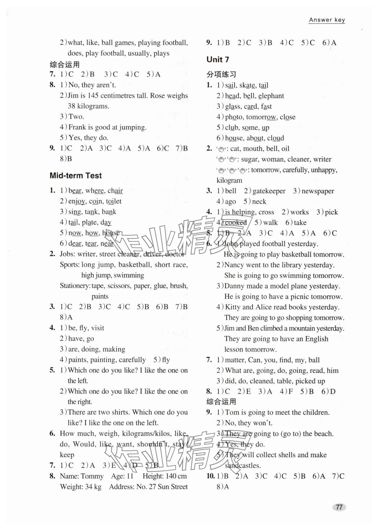 相关练习册答案