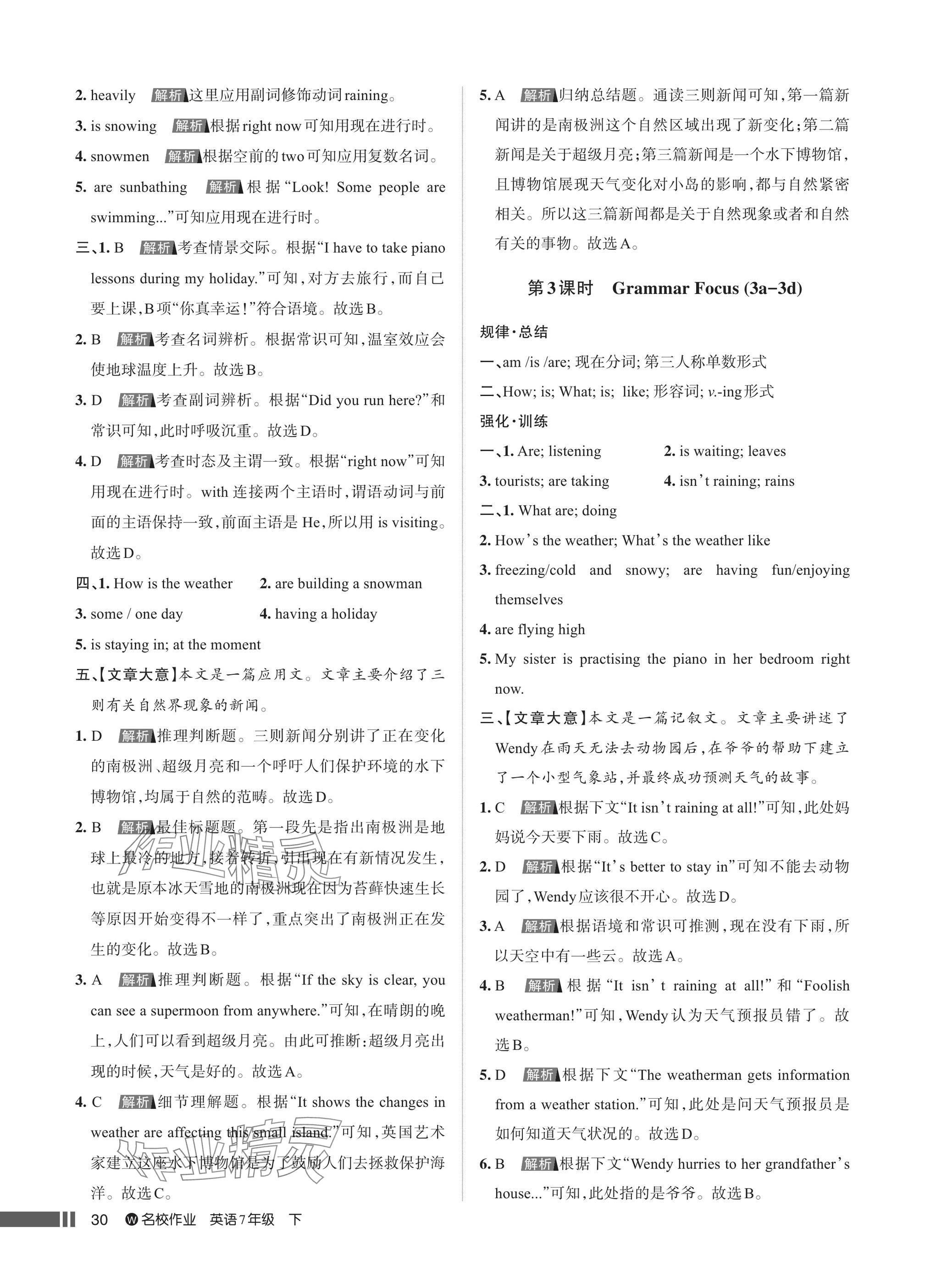 注:目前有些书本章节名称可能整理的还不是很完善,但都是按照顺序排列的,请同学们按照顺序仔细查找。练习册 2025年名校作业七年级英语下册人教版武汉专版 答案主要是用来给同学们做完题方便对答案用的,请勿直接抄袭。